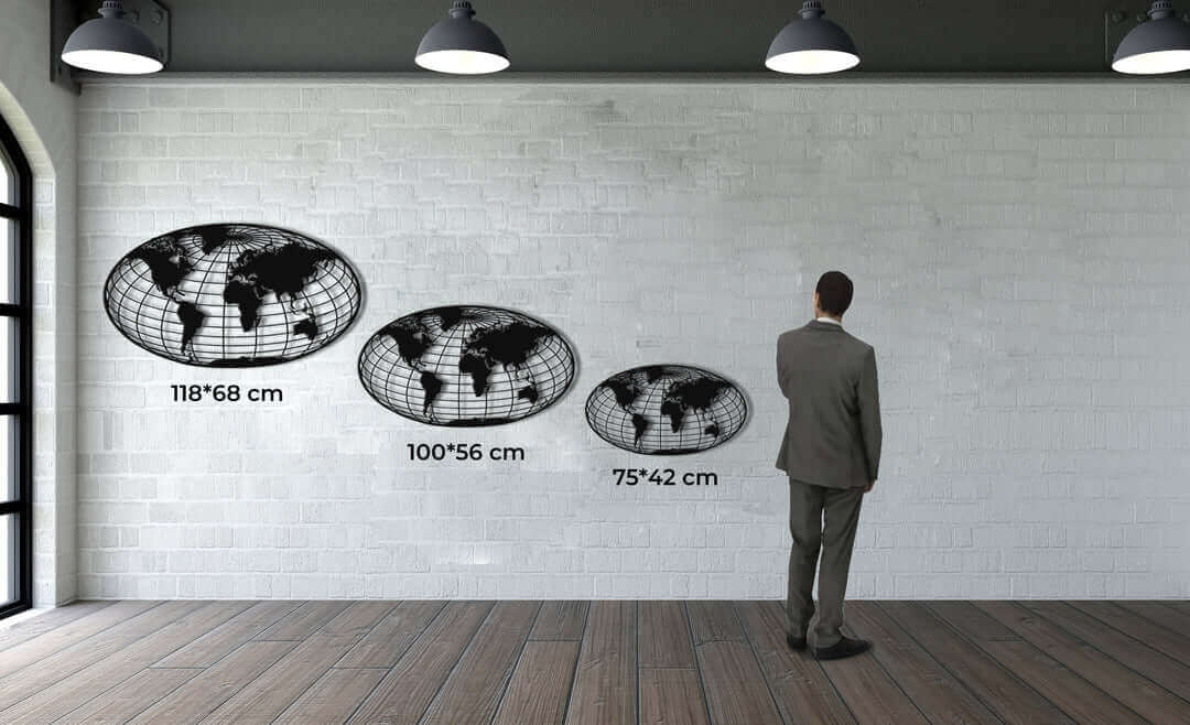 Eine Weltkarten-Wanddekoration kann mehr als nur ein dekoratives Stück sein; Es kann eine Leinwand zur Personalisierung sein. Erwägen Sie das Anbringen von Stecknadeln oder Lichtern, um Länder zu kennzeichnen, in denen Sie geschäftlich tätig waren, eine Reise unternommen haben oder von einer Reise träumen. Das verleiht nicht nur eine persönliche Note, sondern regt auch zu Gesprächen und Geschichten an. Darüber hinaus bietet die Weltkarten-Wandkunst von Dekadron eine einzigartige und stilvolle Möglichkeit, diese Personalisierung zu verstärken und Kunstfertigkeit mit Ihrer individuellen Reiseerzählung zu verbinden.