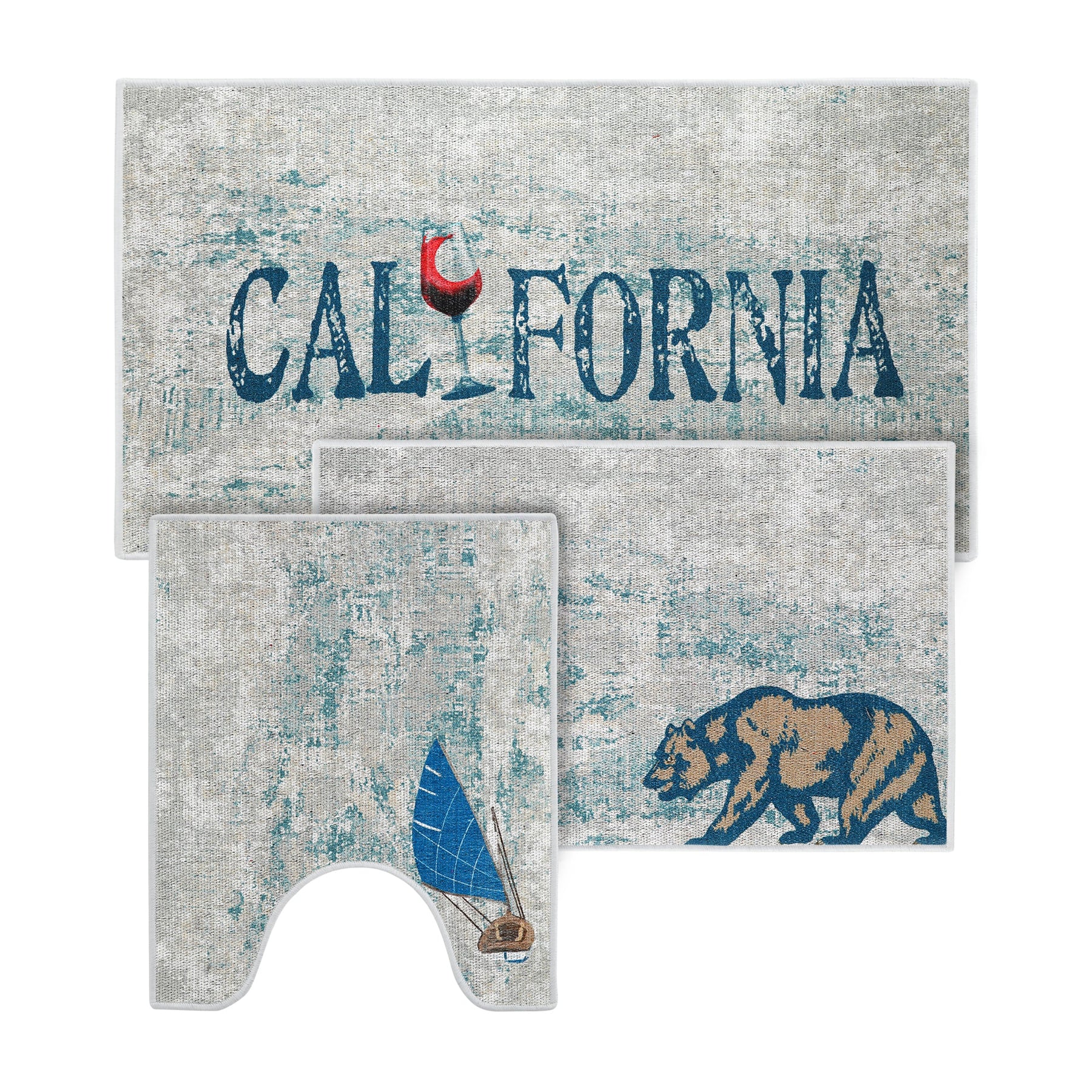 US States California Design 3 Piece Bathroom Rugs Set | Blue
