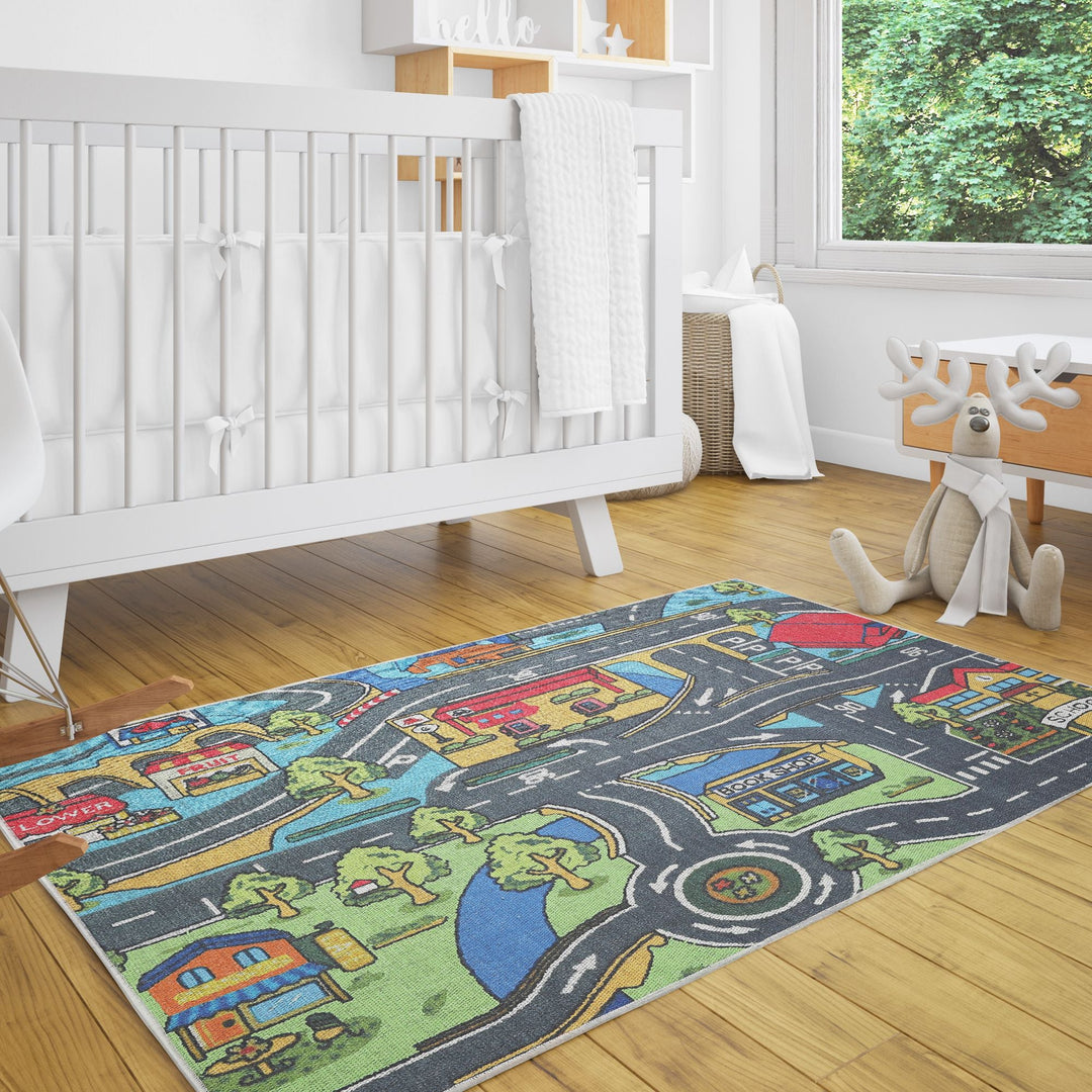 Low Pile- Non-Slip- Educational Kids Rug for Playroom |Road Pattern |39.5 x 59 Inches