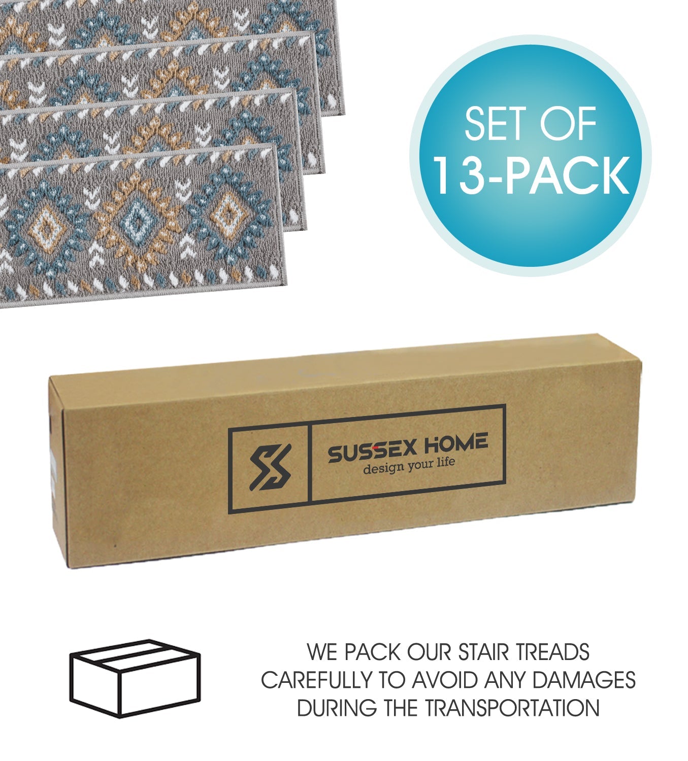 • KID & PET FRIENDLY ****** Our elegantly designed and colored stair treads are made from original area rug and 100% POLYPROPYLENE to prevent shedding, and will tie together any fashionable space. Kids and pet friendly.