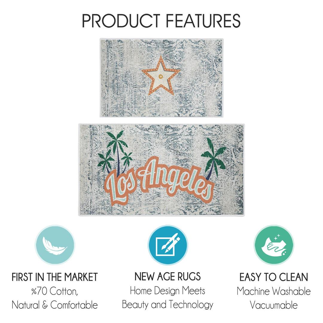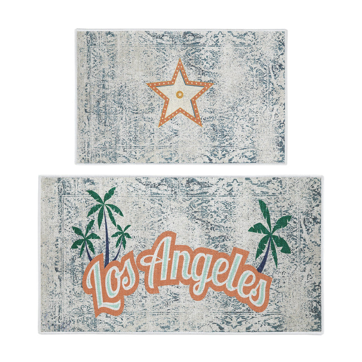 US States Los Angeles Design Non Skid Washable Kitchen Runner Rugs Set of 2| 44 x 24 and 31.5 x 20 Inches Floor Mats |Orange
