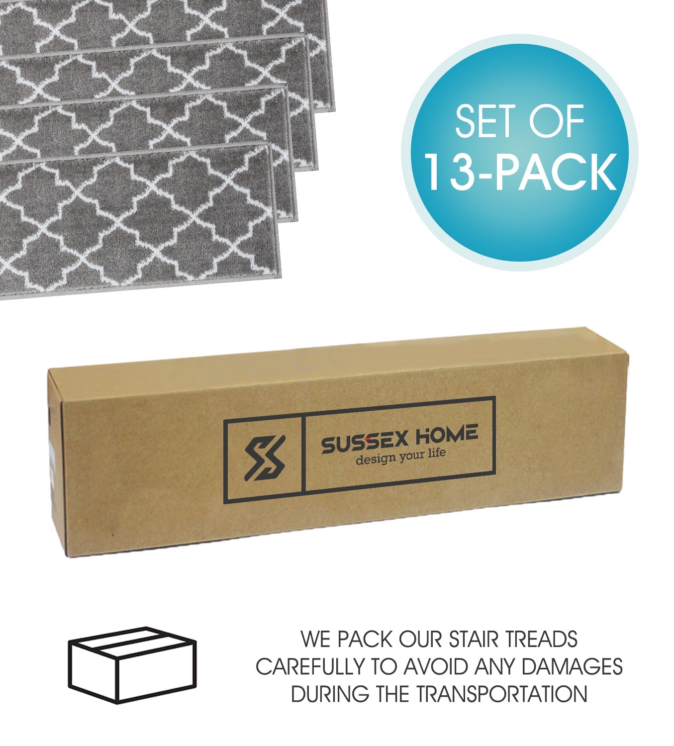 • KID & PET FRIENDLY ****** Our elegantly designed and colored stair treads are made from original area rug and 100% POLYPROPYLENE to prevent shedding, and will tie together any fashionable space. Kids and pet friendly.
