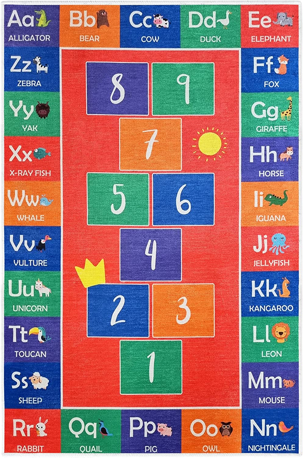 Sussex Home Low Pile Kids Rug for Playroom - Washable Cotton Educational Rug for Kids Room - 39.5 x 59 Inches - Hopscothc Pattern