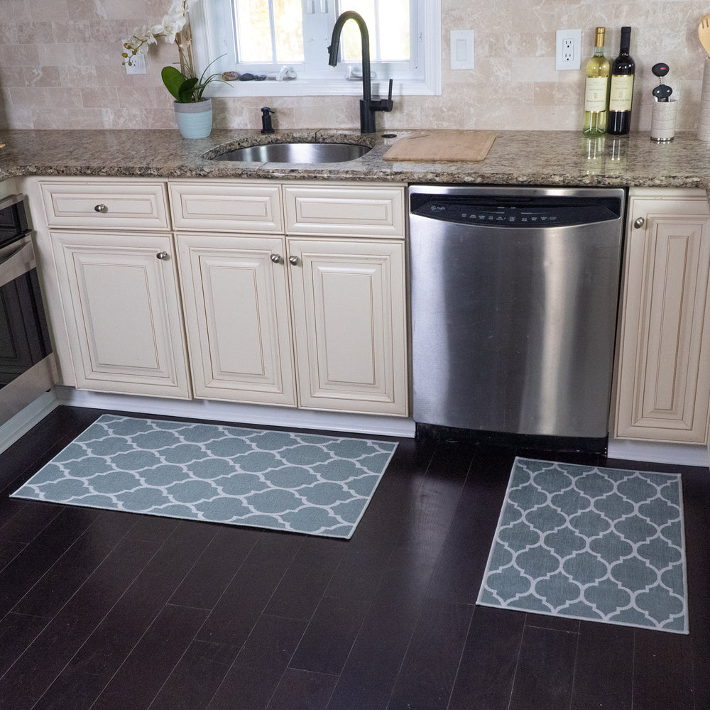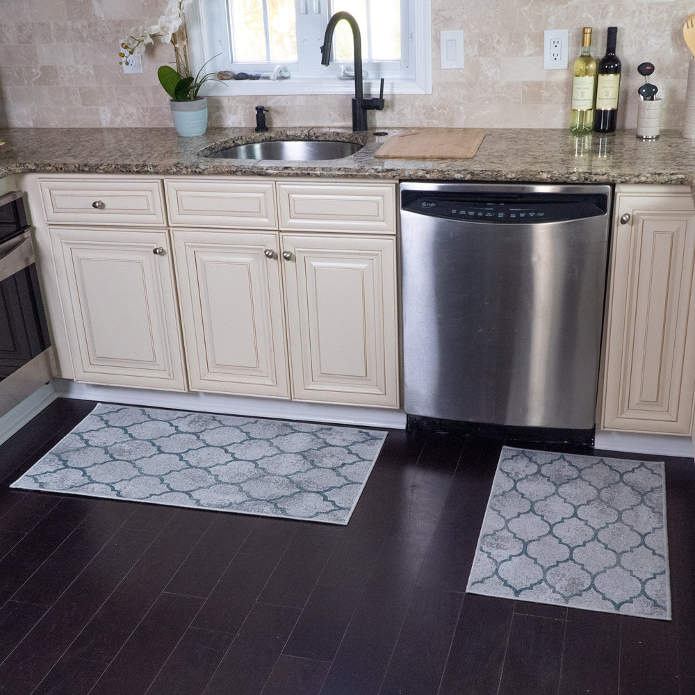 Moroccan Design Non Skid Washable Kitchen Runner Rugs Set of 2| 44 x 24 and 31.5 x 20 Inches Floor Mats |Gray&Blue