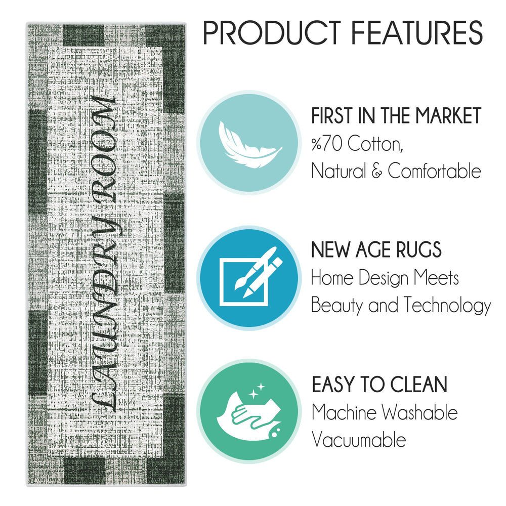 Non Skid Washable Laundry Room Rug Runner-20" x 59"| Gray&White