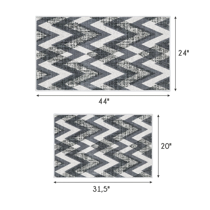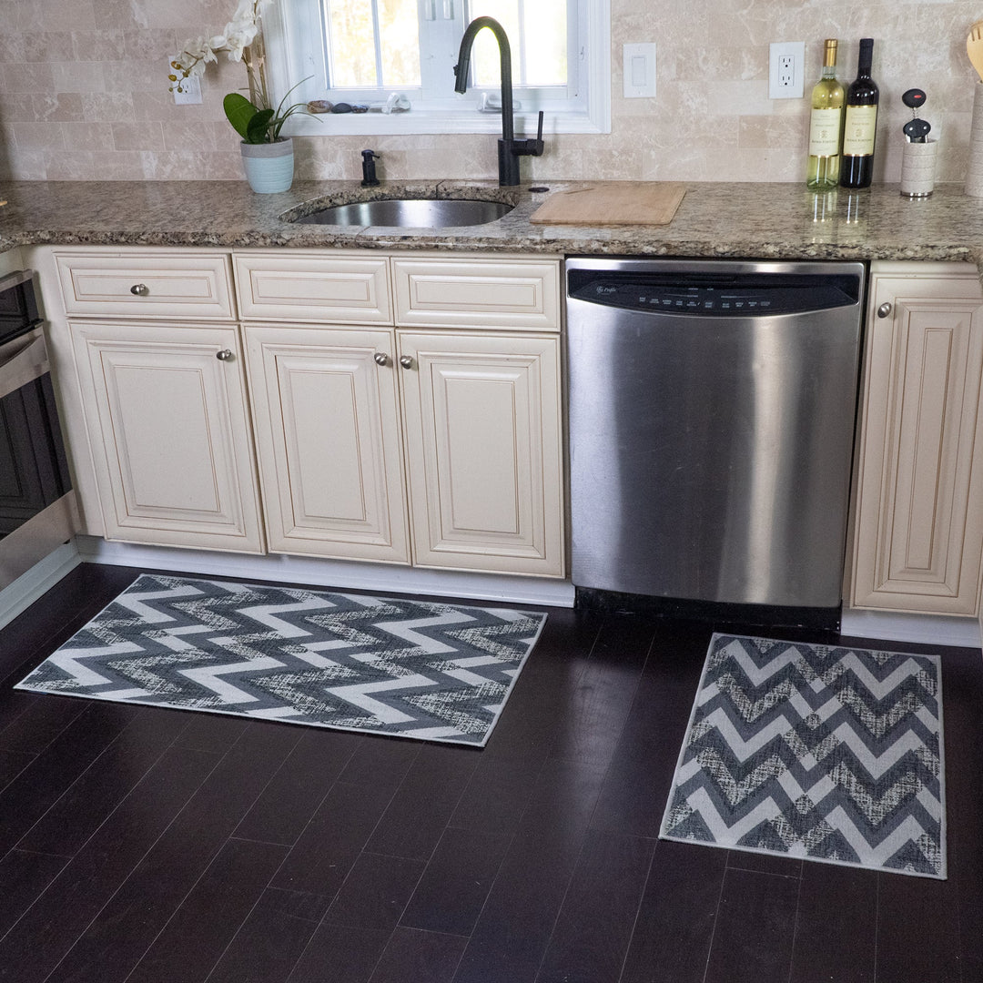 Chevron Design Non Skid Washable Kitchen Runner Rugs Set of 2| 44 x 24 and 31.5 x 20 Inches Floor Mats |Gray