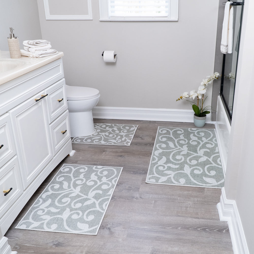 Lightweight, soft, and durable 70% cotton and 30% polyester material with non-skid backing prevents slipping on all floor types. With under 1/4" in thickness, our set will not get trapped under the doors, creating a hazardless environment that is safe for children, the elderly, and pets.