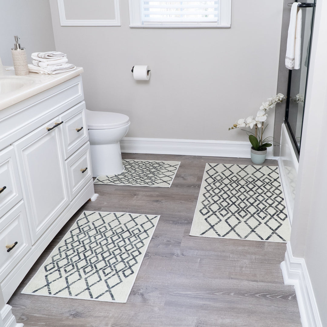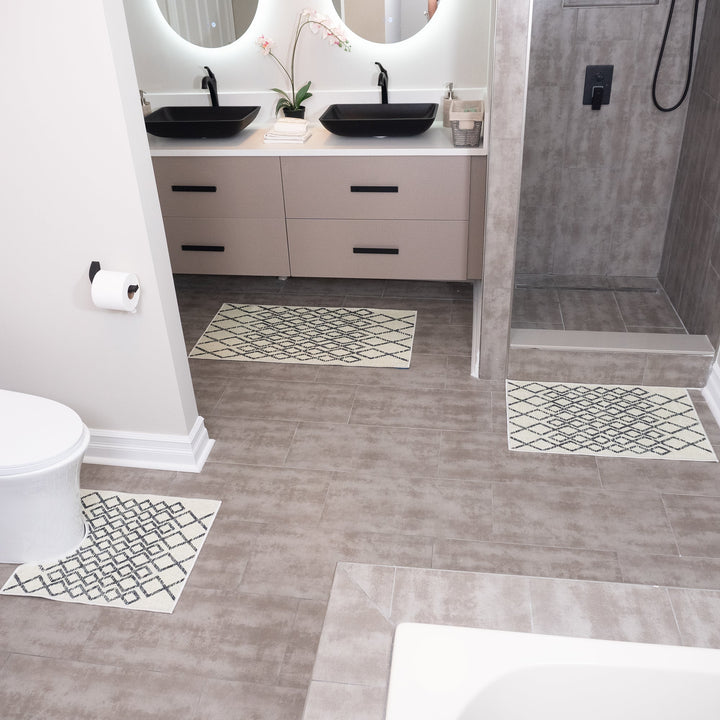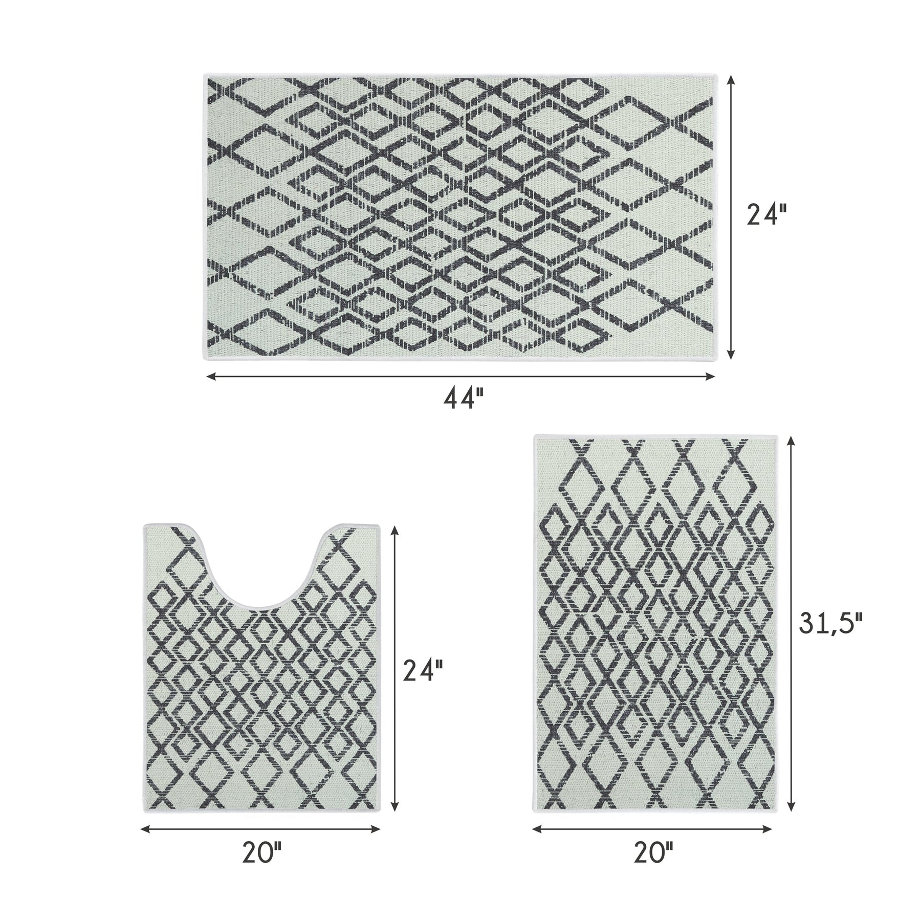 Geometric Daimond Design 3 Piece Bathroom Rugs Set | Ivory
