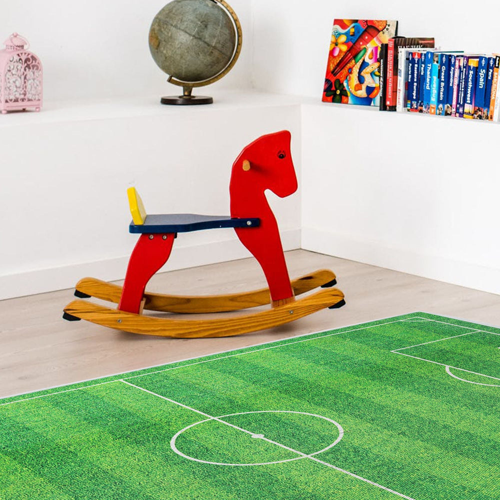 Low Pile- Non-Slip- Educational Kids Rug for Playroom |Soccer Pattern |39.5 x 59 Inches