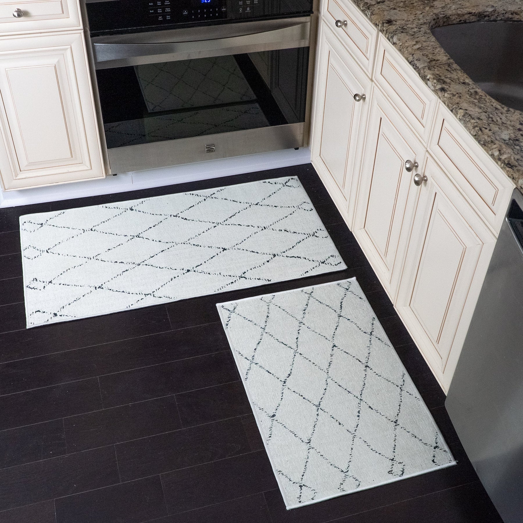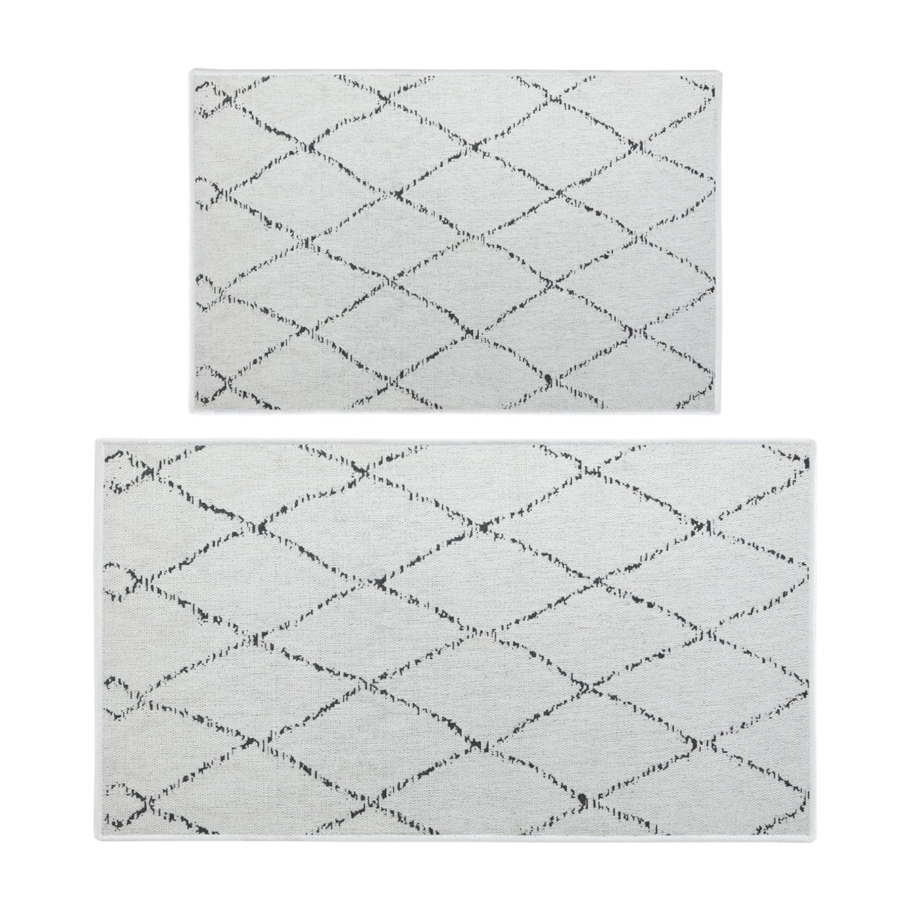 Moroccan Trellis Design Non Skid Washable Kitchen Runner Rugs Set of 2| 44 x 24 and 31.5 x 20 Inches Floor Mats |Ivory
