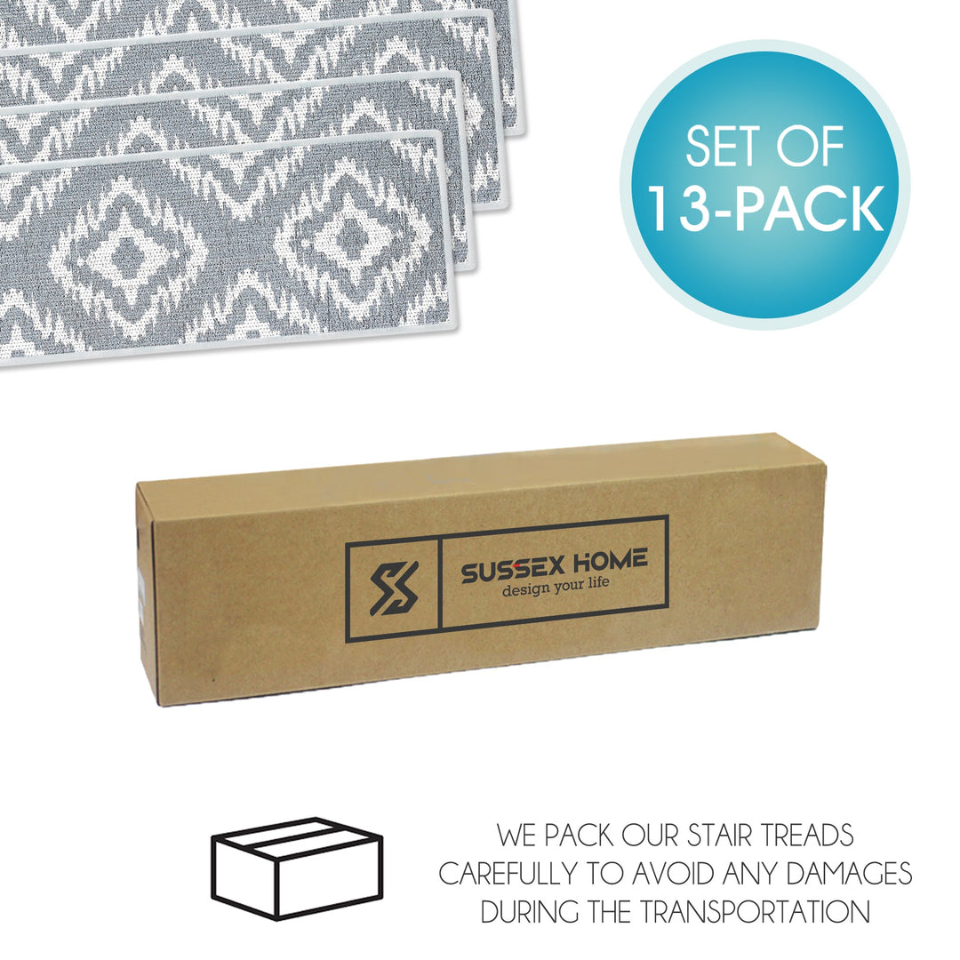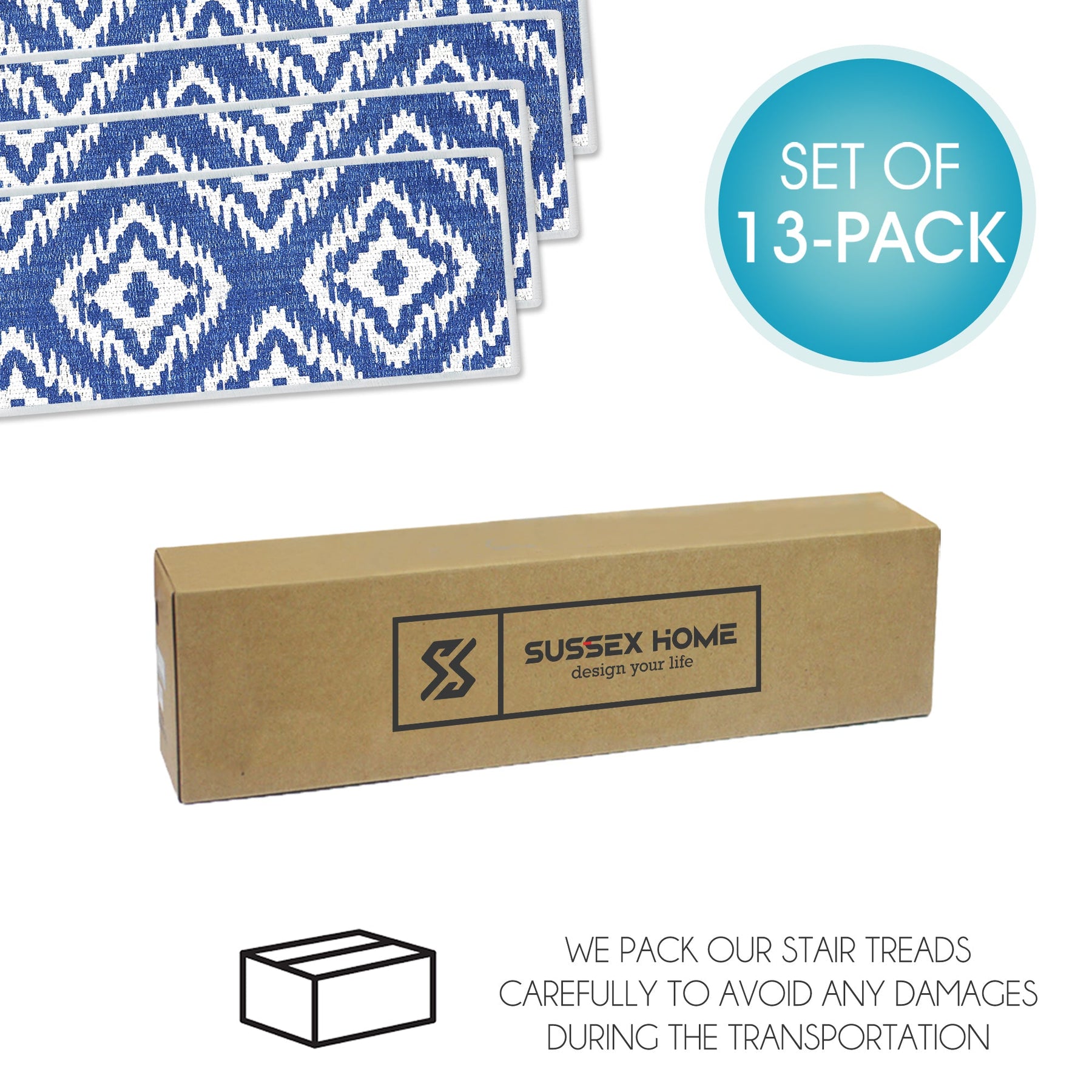 Combine the safety of your family with protection for your stairs with our carpet stair treads. With our long-lasting and comfortable stair treads in place, you'll never have to worry about unfortunate stair accidents happening to any of your family members. The Stair Treads by SussexHome will help safeguard your family from slippery and hard-edged stairs while also protecting your hardwood stairs from wear and tear. Our stair treads are available in packs of 4, 7 and 13 - any leftovers can be used for any other areas in the house that needs anti-slip protection!