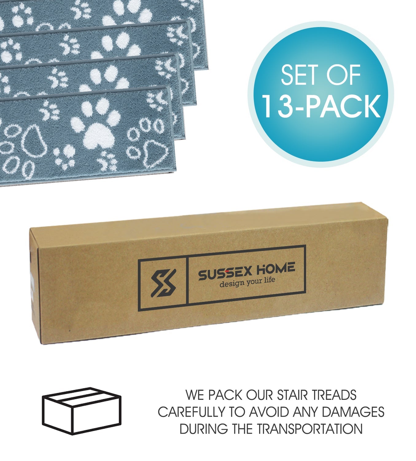 • KID & PET FRIENDLY ****** Our elegantly designed and colored stair treads are made from original area rug and 100% POLYPROPYLENE to prevent shedding, and will tie together any fashionable space. Kids and pet friendly.