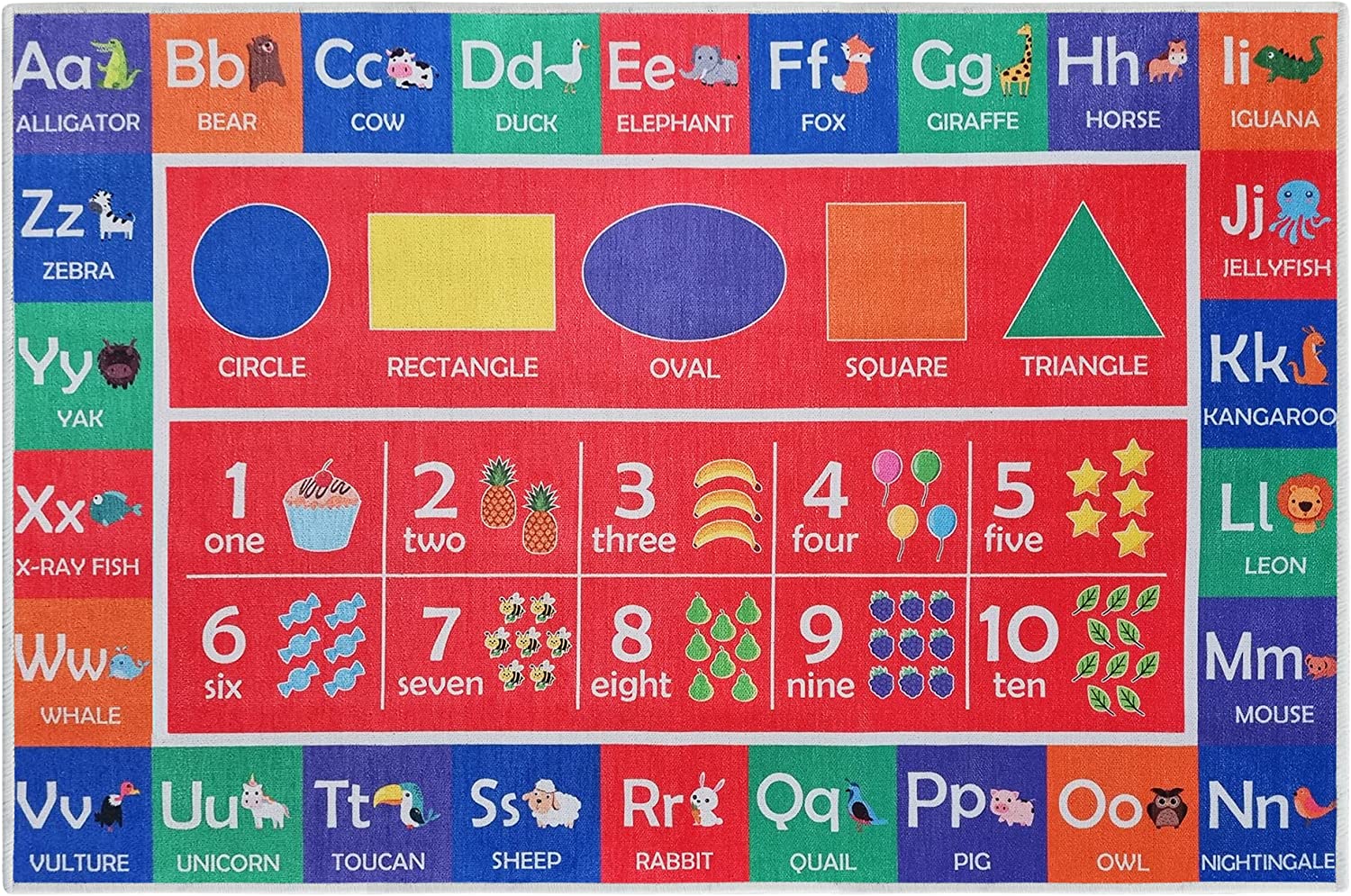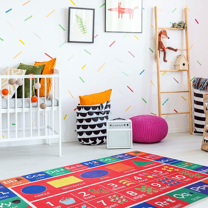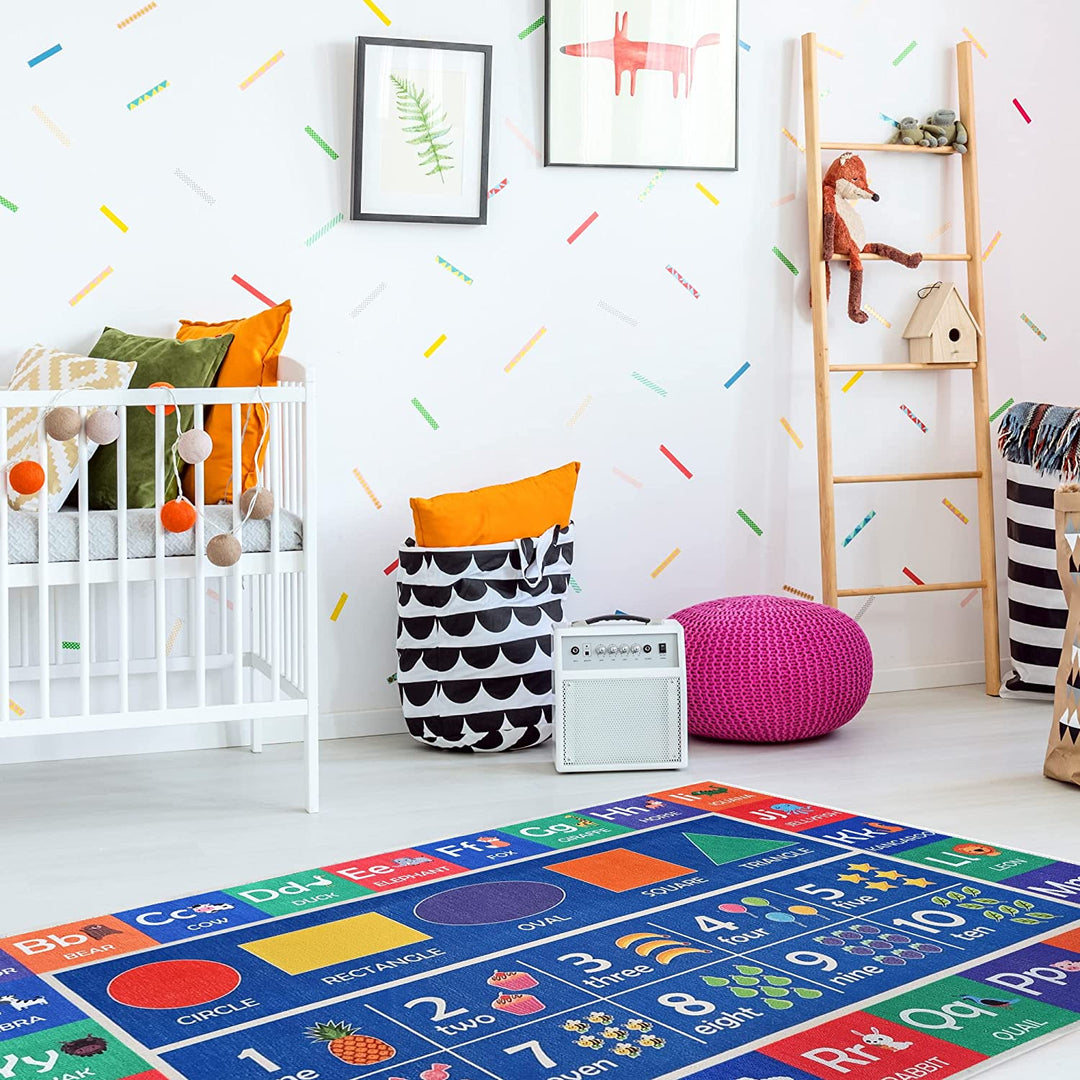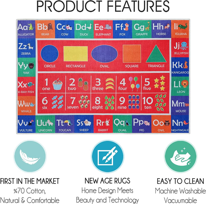 Sussex Home Low Pile Kids Rug for Playroom - Washable Cotton Educational Rug for Kids Room - 39.5 x 59 Inches - Play Rug Pattern