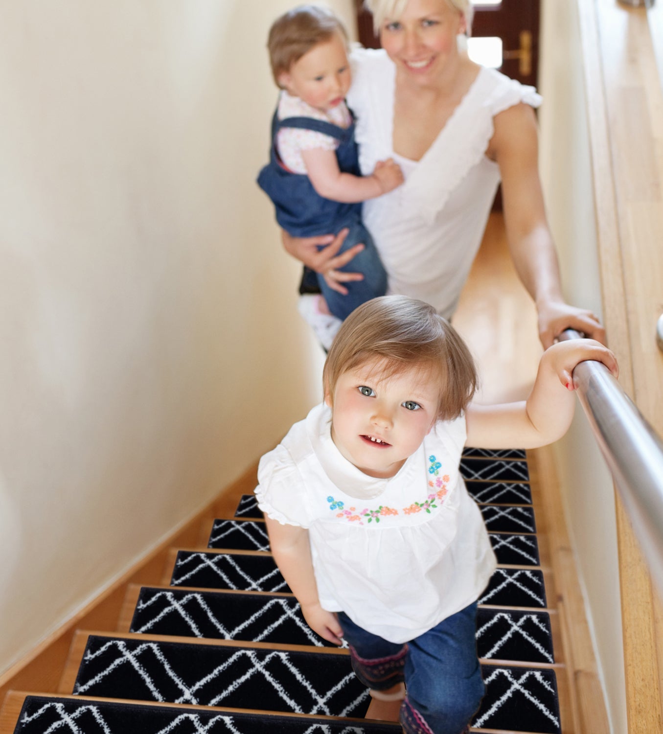 • KID & PET FRIENDLY****** Our elegantly designed and colored stair treads are made from original area rug and 100% POLYPROPYLENE to prevent shedding, and will tie together any fashionable space. Kids and pet friendly.
