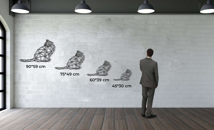 Arte de Pared de Metal con Forma de Gato Geométrico