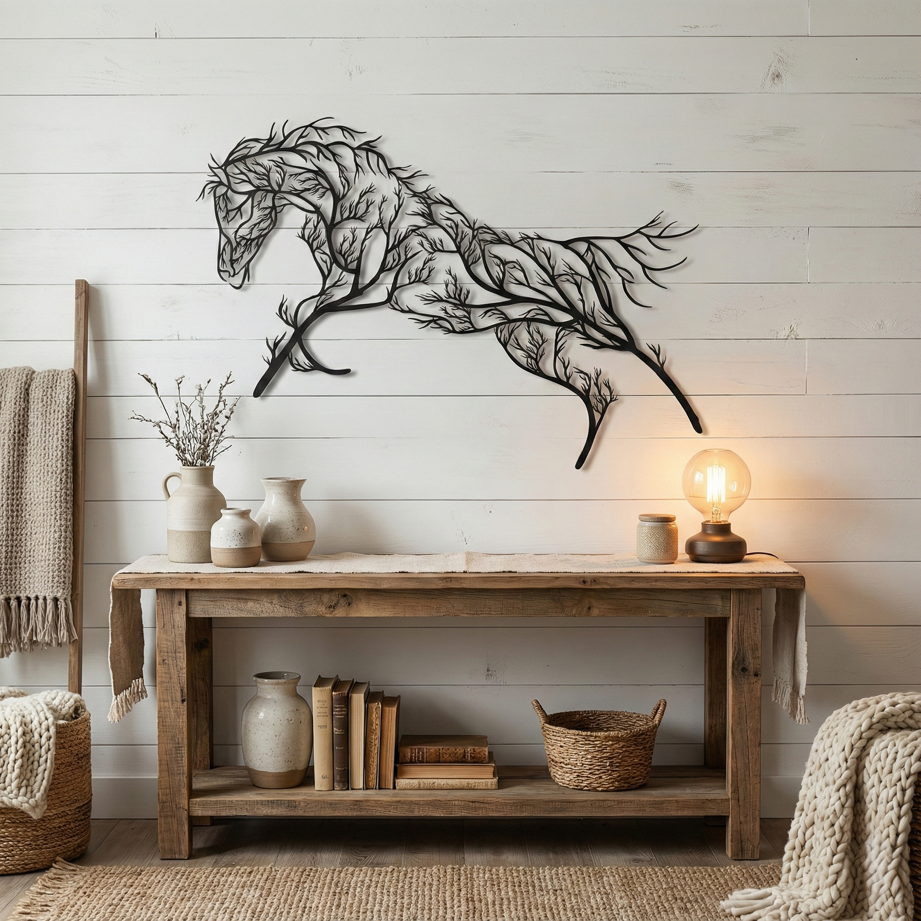 Arte da parete in metallo Cavallo sull'albero
