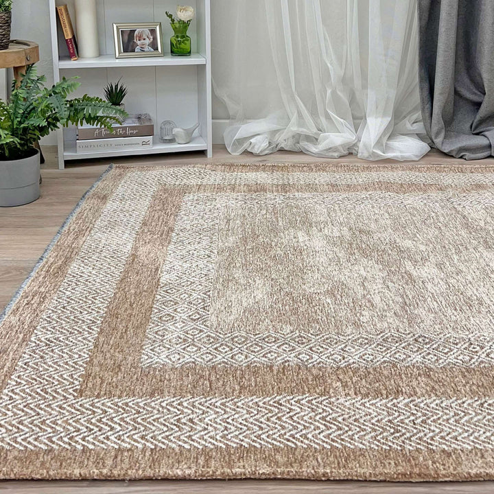 Alfa Rich 7x10 Beige Cream area rugs are cotton, pet friendly, easy to clean, soft, foldable and machine washable, but we recommend laundromat for large sizes! Alfa Rich washable area rugs are woven, odorless and lint-free. But wait, there's more! Alfa Rich area rugs have a medium pile (0.50 inches). Alfa Rich rugs effortlessly combine the charm of classic and modern designs with practicality for every home, office or lifestyle. Alfa Rich rugs, which add a new touch to the aesthetics of Turkish rugs, have vivid colors and are being produced on our electric looms, given their final shapes by hand weaving and made ready for your use. It's like a dream come true! Alfa Rich washable area rugs can be used as living room rug, bedroom rug, kids room rug, kitchen rug, bathroom rug, runner rug, entryway rug, hallway rug, laundry room rug, nursery rug and office rug. They are also very suitable option for use in places such as a summer or winter garden. How adorable is that? Caring for your new rug is a breeze! Suitable for vacuum cleaner and robot vacuum cleaner. Do not beat with a hard object. Do not expose to direct sunlight for a long time. Protect from humid environments. Do not pull threads from your rug, if there are threads that have come off, cut them from the surface with the help of scissors. When not in use, it is recommended to be wrapped and packaged in rolls and stored. Easy-peasy! Alfa Rich area rugs are lovingly wovened by us in Turkiye, a place where artistry and tradition intertwine. Alfa Rich area rugs are woven from 60% cotton 40% polyester. Oh, and one little note: Please keep in mind that all rug sizes are nominal, and a slight variance of +/- 3% is perfectly normal. We want to ensure you have all the details! Our utmost desire is to see you absolutely thrilled with your purchase. Your happiness is our priority! Kindest Regards. Alfa Rich