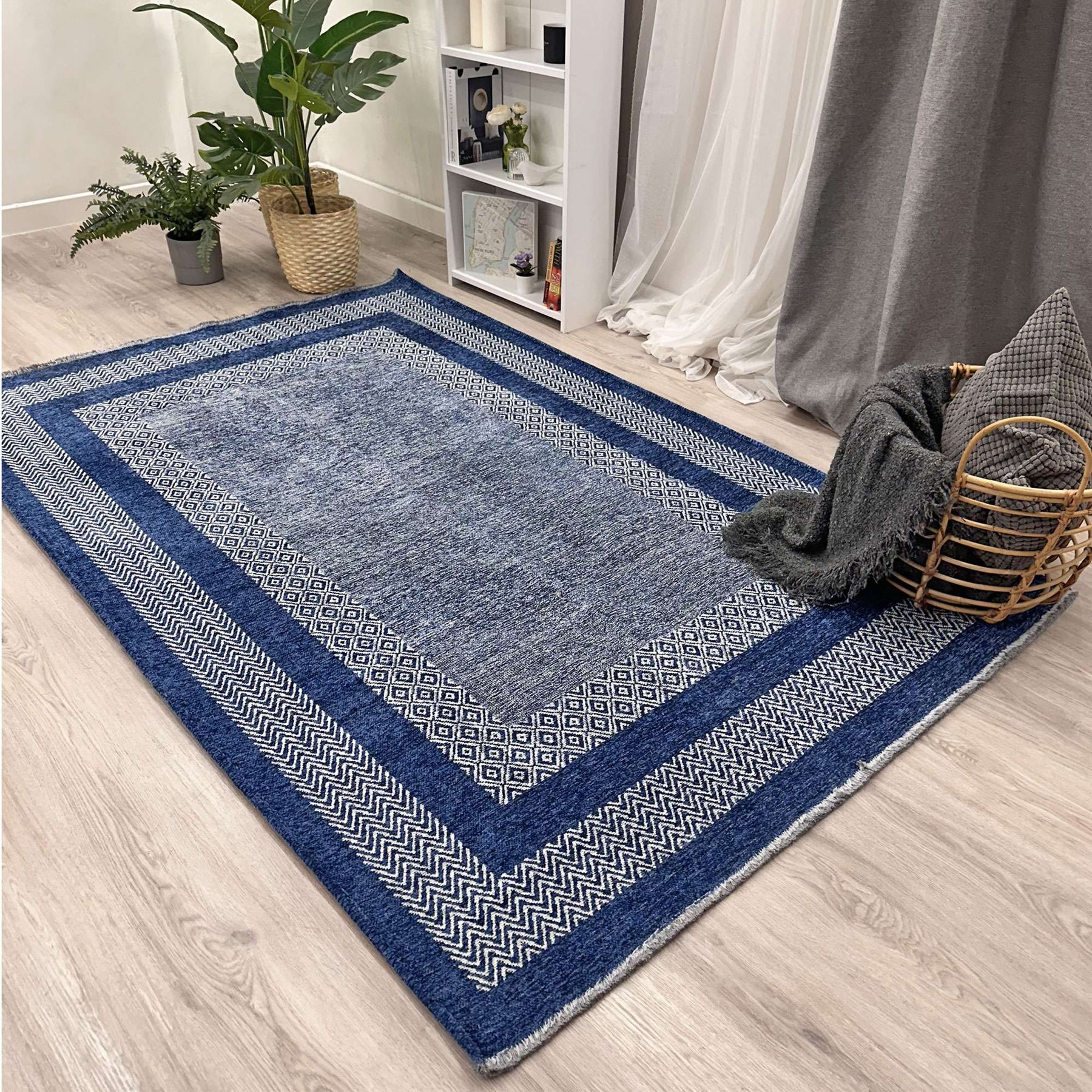 Alfa Rich 7x10 Navy Blue area rugs are cotton, pet friendly, easy to clean, soft, foldable and machine washable, but we recommend laundromat for large sizes! Alfa Rich washable area rugs are woven, odorless and lint-free. But wait, there's more! Alfa Rich area rugs have a medium pile (0.50 inches). Alfa Rich rugs effortlessly combine the charm of classic and modern designs with practicality for every home, office or lifestyle. Alfa Rich rugs, which add a new touch to the aesthetics of Turkish rugs, have vivid colors and are being produced on our electric looms, given their final shapes by hand weaving and made ready for your use. It's like a dream come true! Alfa Rich washable area rugs can be used as living room rug, bedroom rug, kids room rug, kitchen rug, bathroom rug, runner rug, entryway rug, hallway rug, laundry room rug, nursery rug and office rug. They are also very suitable option for use in places such as a summer or winter garden. How adorable is that? Caring for your new rug is a breeze! Suitable for vacuum cleaner and robot vacuum cleaner. Do not beat with a hard object. Do not expose to direct sunlight for a long time. Protect from humid environments. Do not pull threads from your rug, if there are threads that have come off, cut them from the surface with the help of scissors. When not in use, it is recommended to be wrapped and packaged in rolls and stored. Easy-peasy! Alfa Rich area rugs are lovingly wovened by us in Turkiye, a place where artistry and tradition intertwine. Alfa Rich area rugs are woven from 60% cotton 40% polyester. Oh, and one little note: Please keep in mind that all rug sizes are nominal, and a slight variance of +/- 3% is perfectly normal. We want to ensure you have all the details! Our utmost desire is to see you absolutely thrilled with your purchase. Your happiness is our priority! Kindest Regards. Alfa Rich