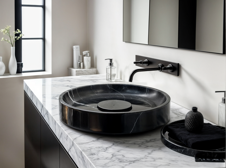View the image of Black Marble Vessel Sink (BRS017) at BROSMARBLE. Premium marble sink in the Bathroom Sinks category, available for $410.00.