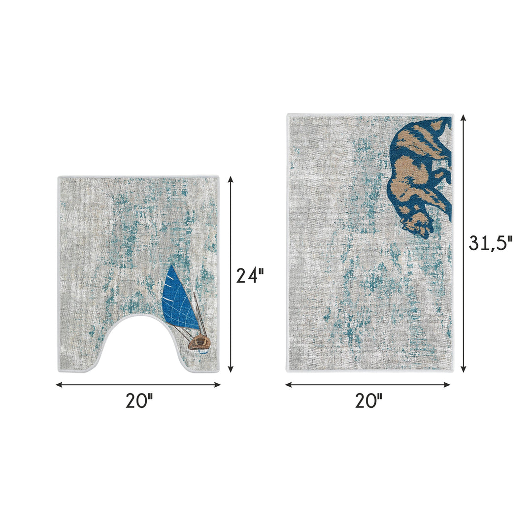 California Design 2 Piece Bathroom Rugs Set | Mutlicolor