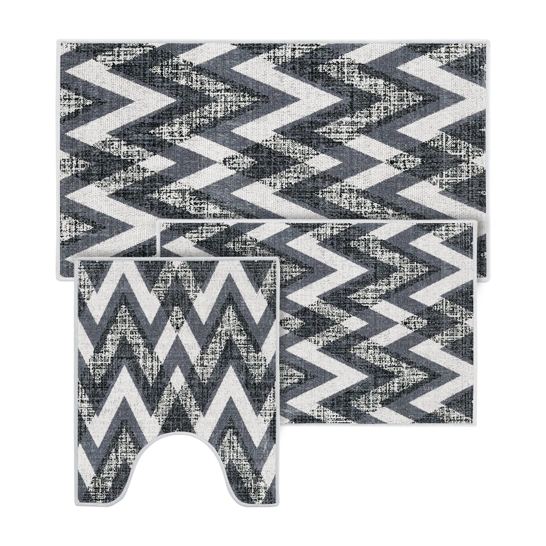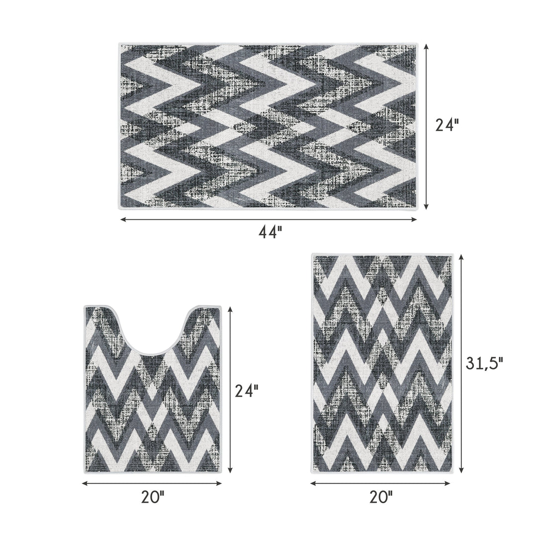 Chevron Design 3 Piece Bathroom Rugs Set | Gray