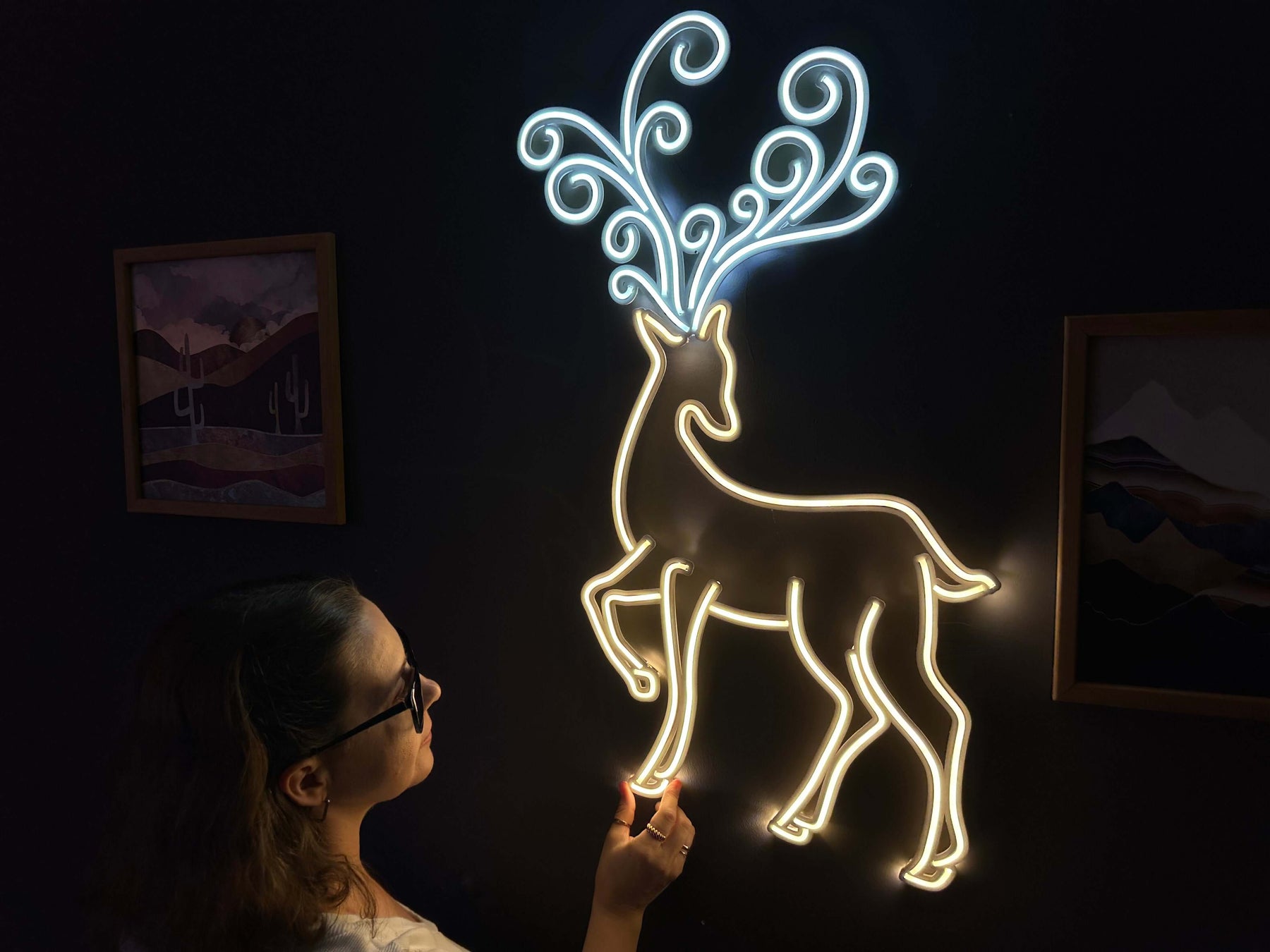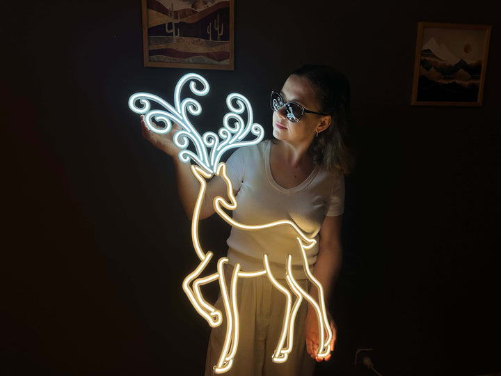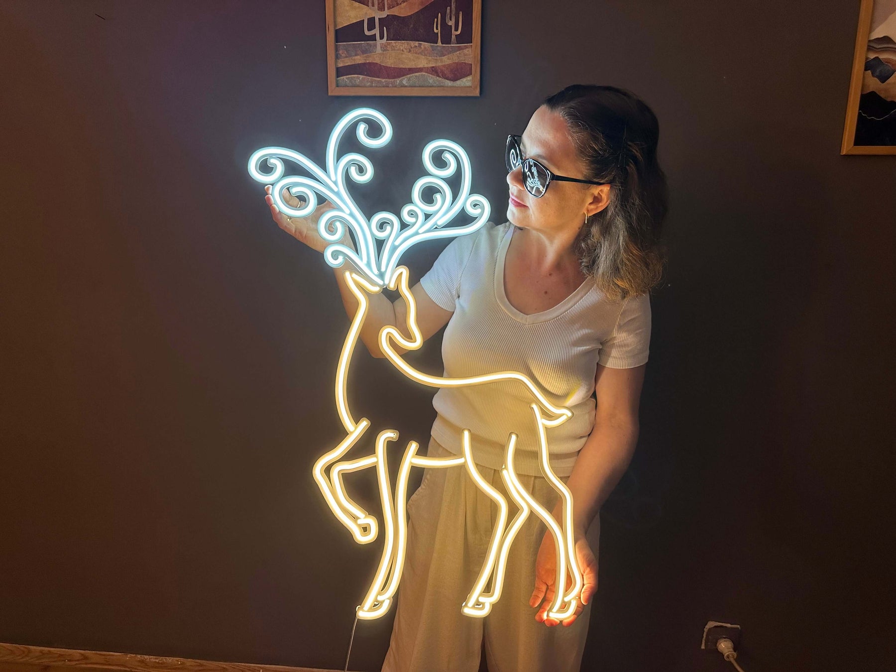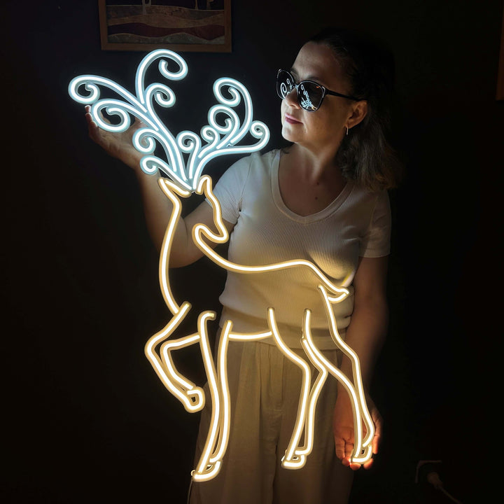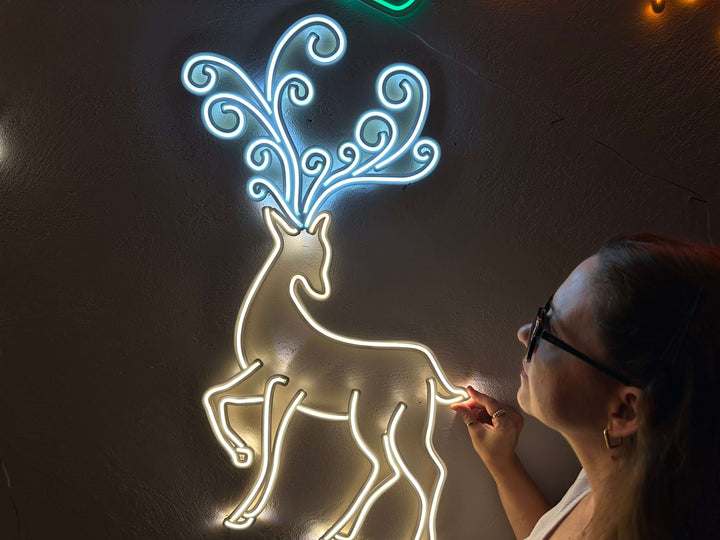 Christmas Deer Neon Sign, Neon Metal Wall Art