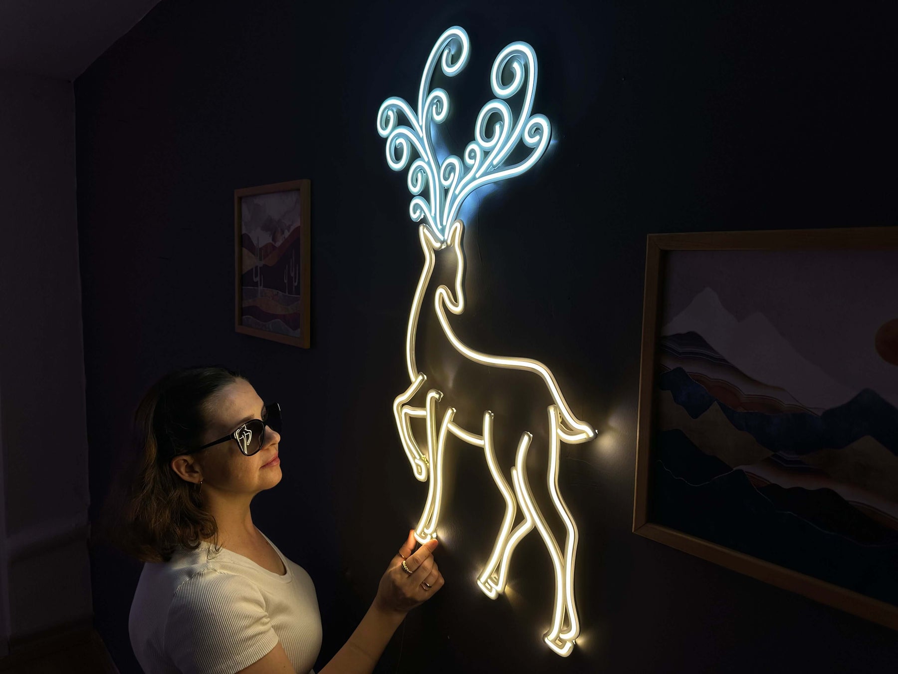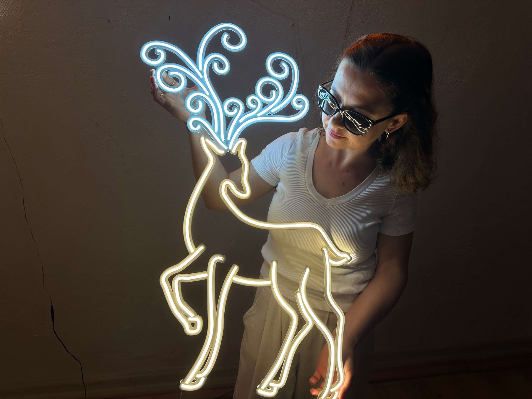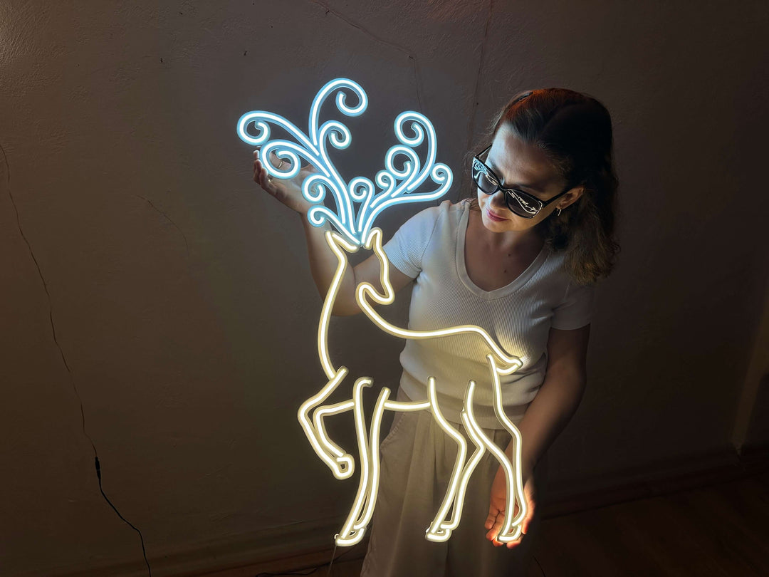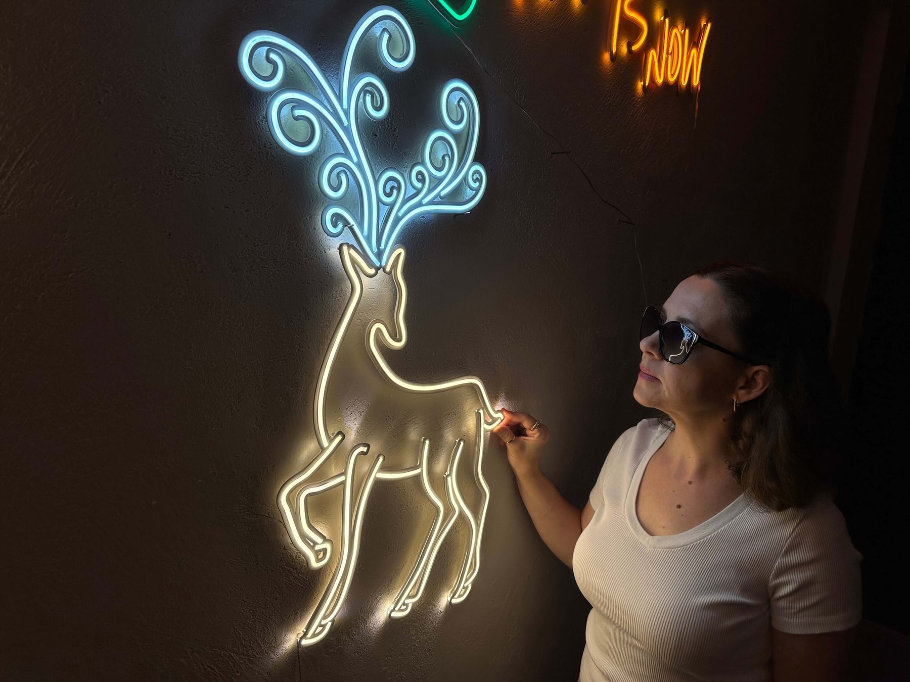 Christmas Deer Neon Sign, Neon Metal Wall Art
