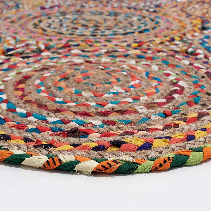 Contemporary Modern Natural Jute Area Rug | 150 cm (4.9') Diameter | Multicolor