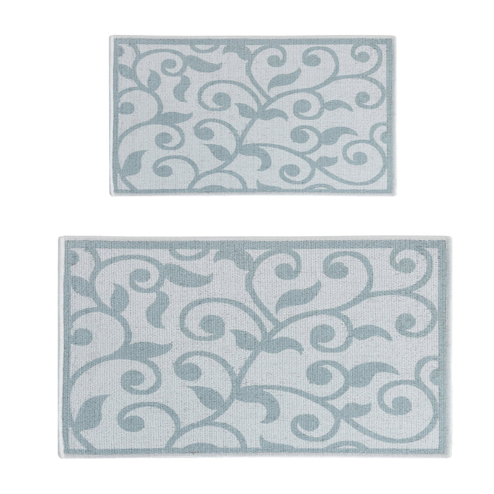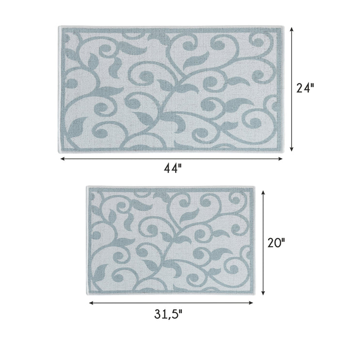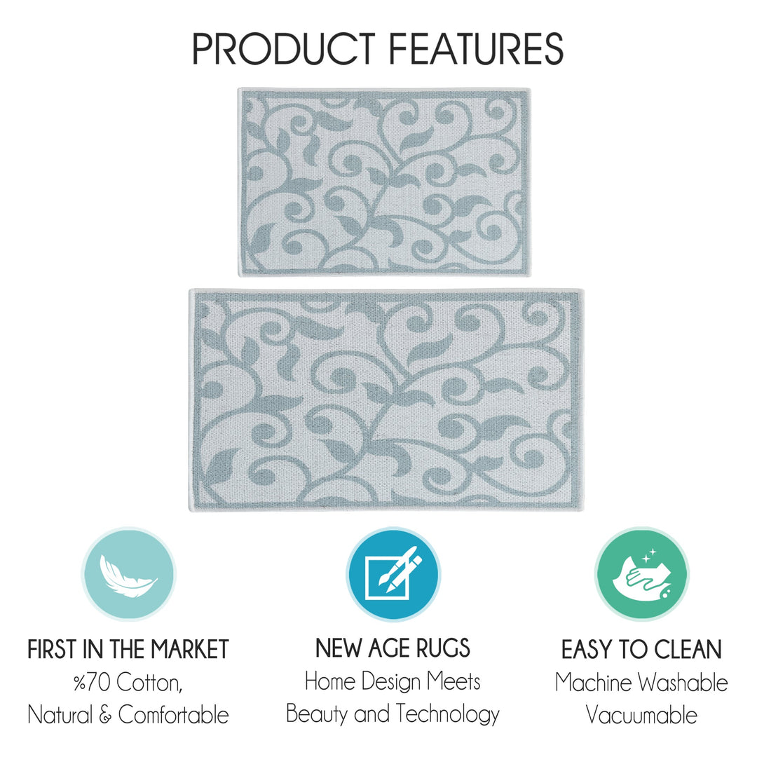 Floral Design Non Skid Washable Kitchen Runner Rugs Set of 2| 44 x 24 and 31.5 x 20 Inches Floor Mats | Gray&Teal