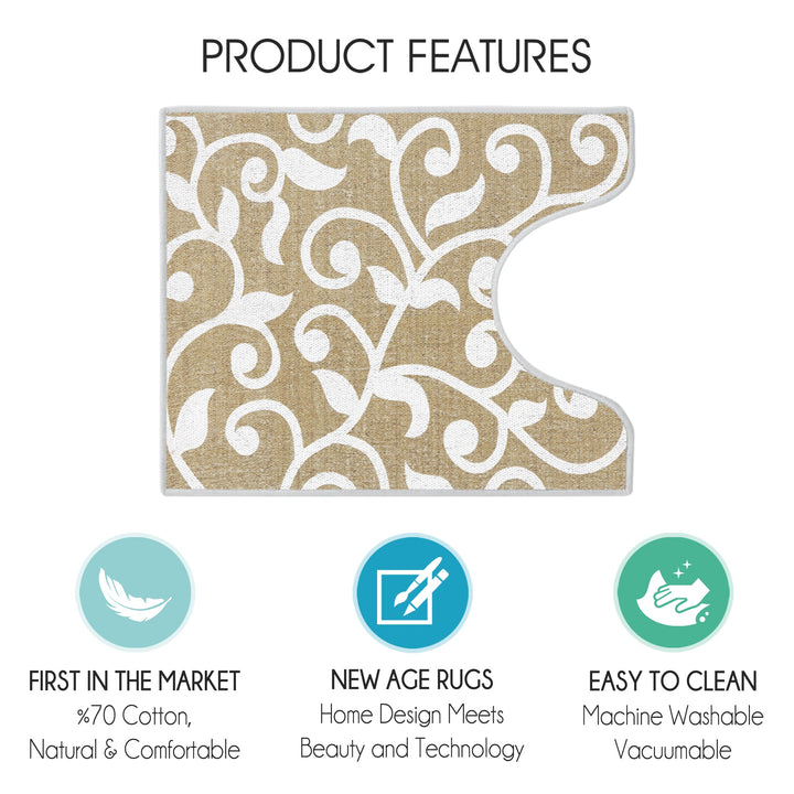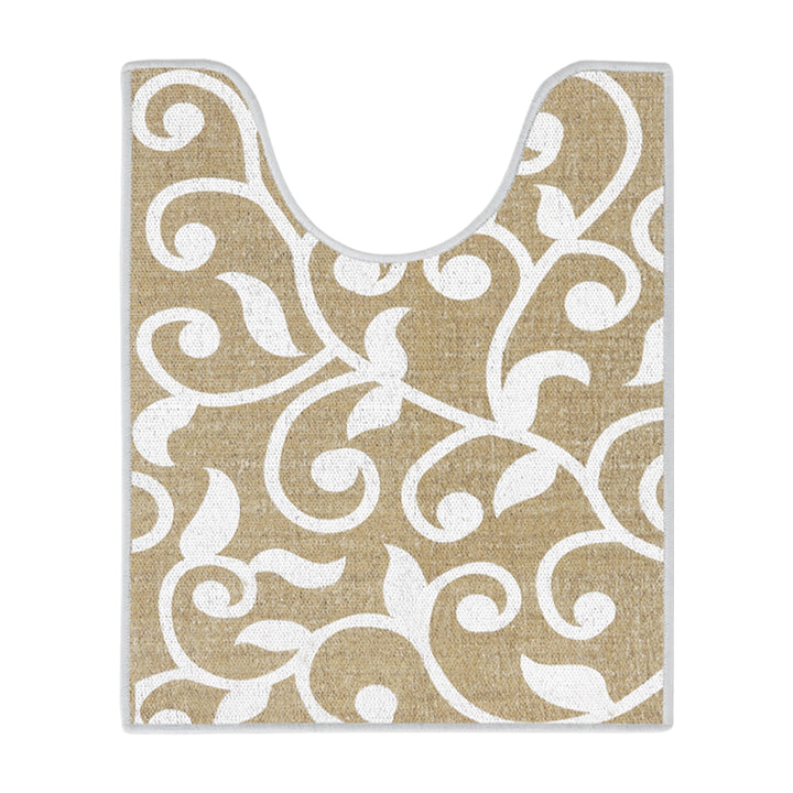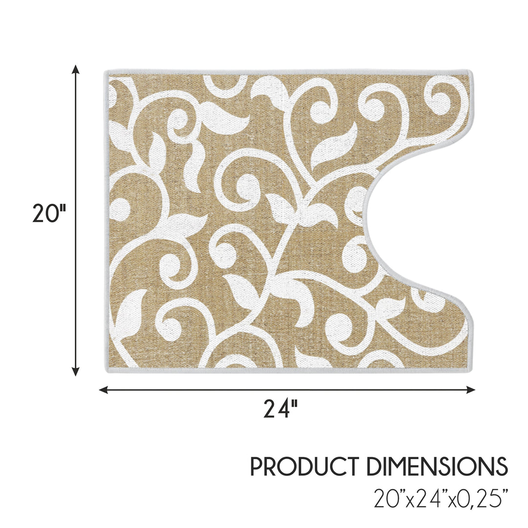 Floral Design U Shape Bathroom Rug | 20”x24" | Beige