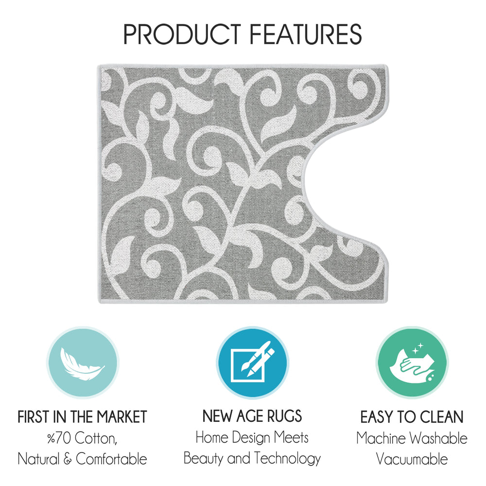 Floral Design U Shape Bathroom Rug | 20”x24" | Gray