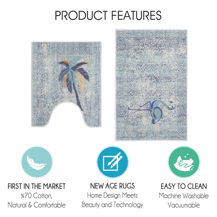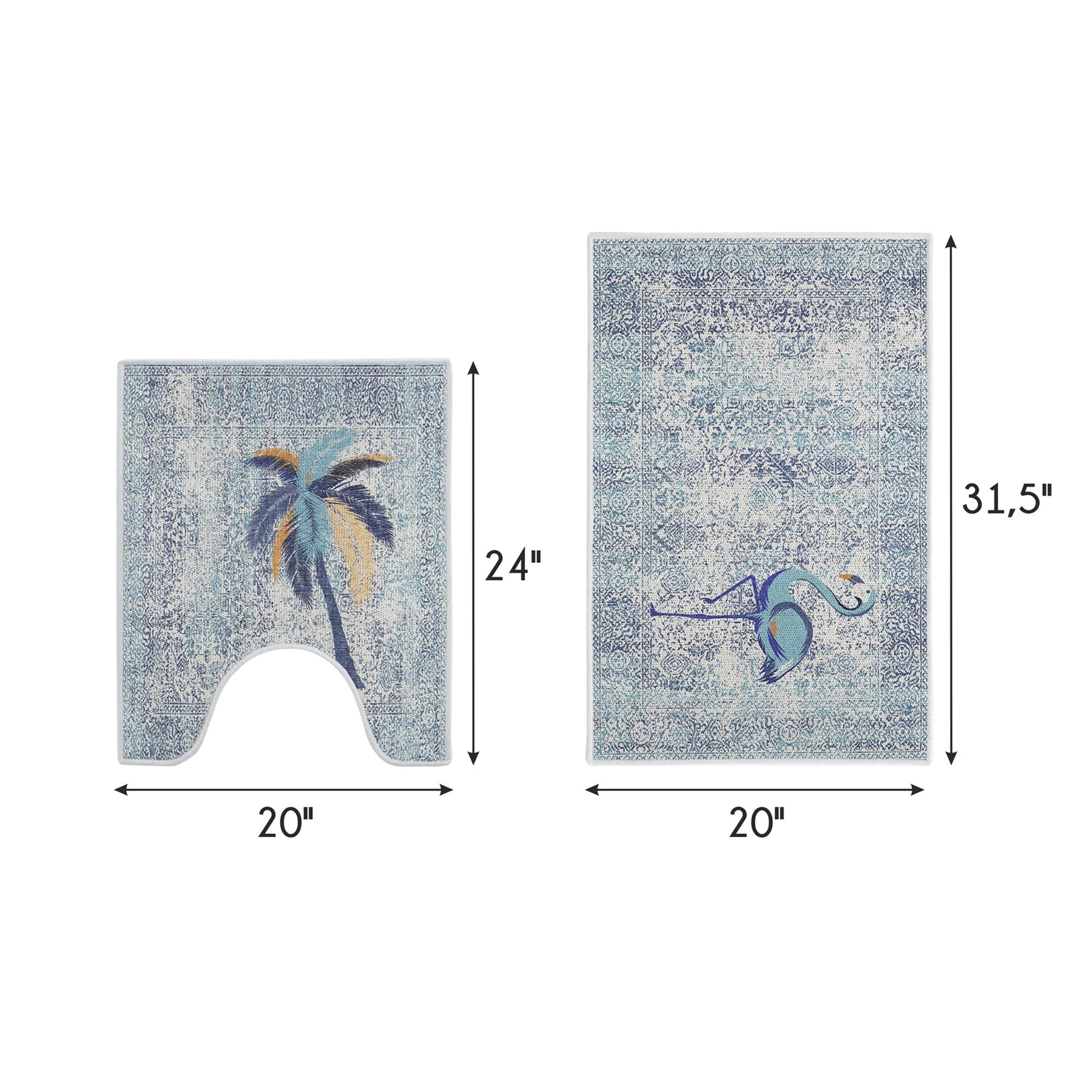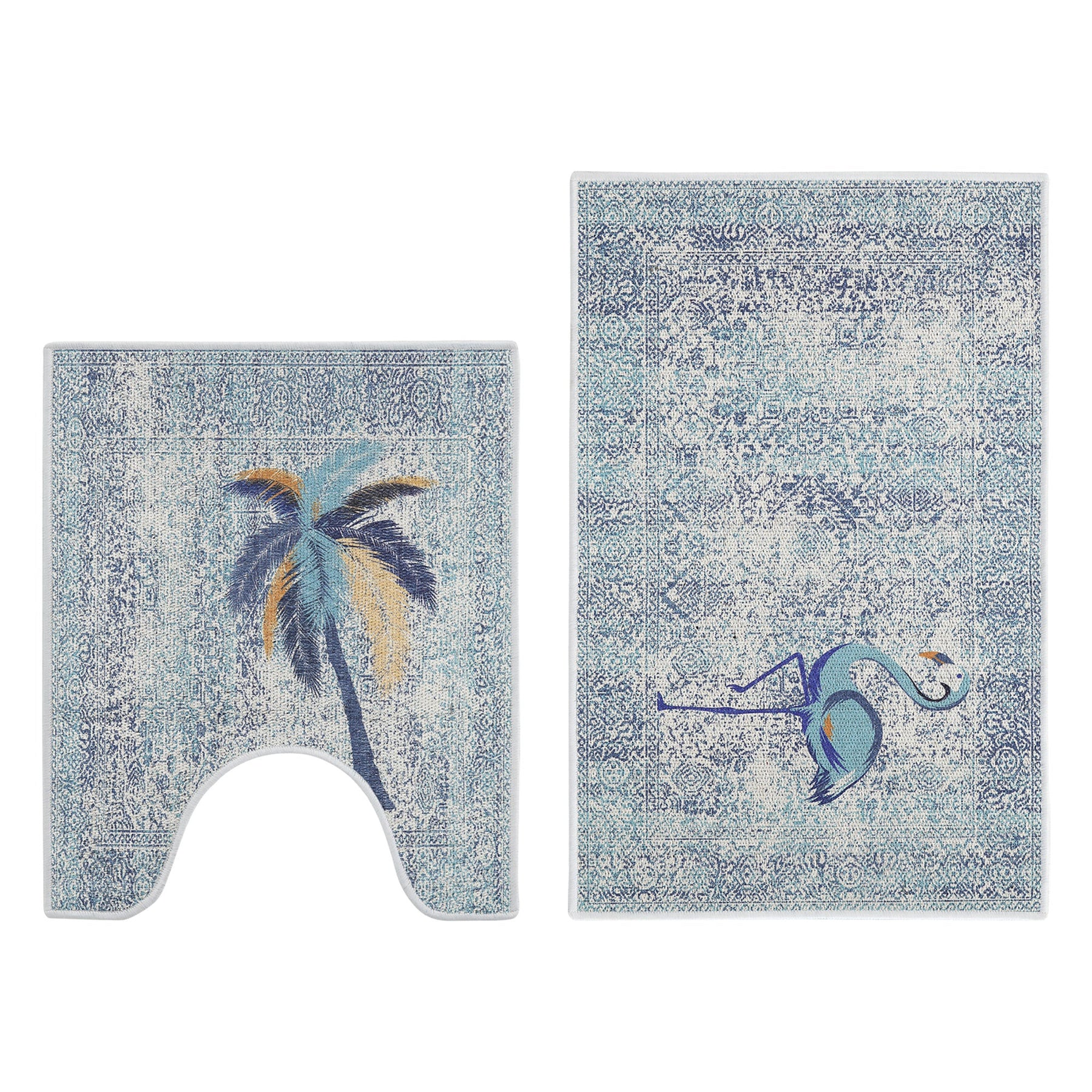 Florida Design 2 Piece Bathroom Rugs Set | Mutlicolor