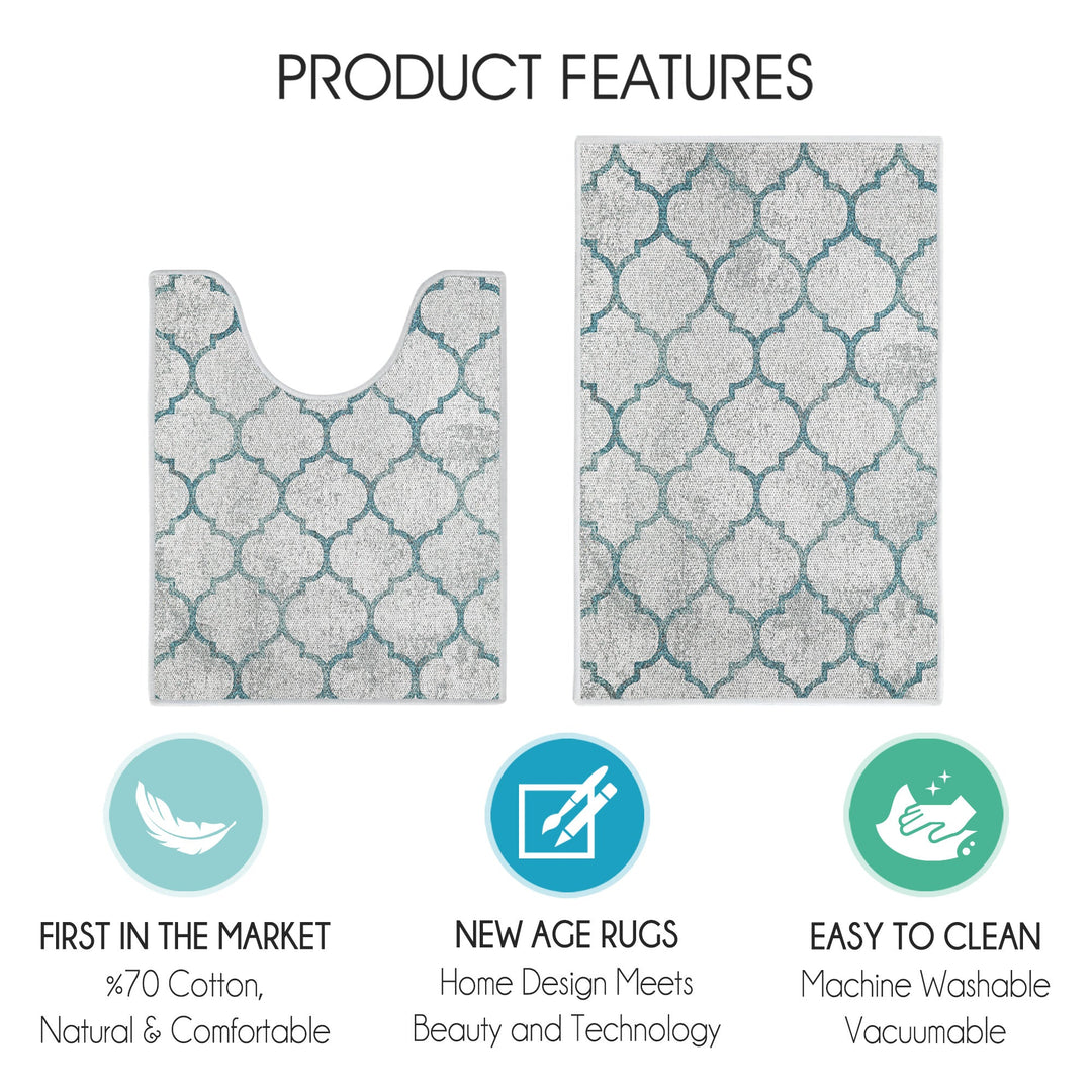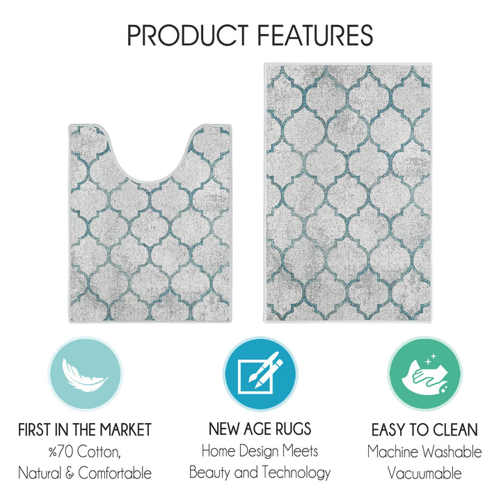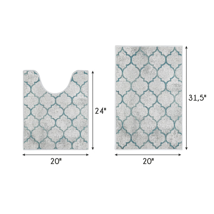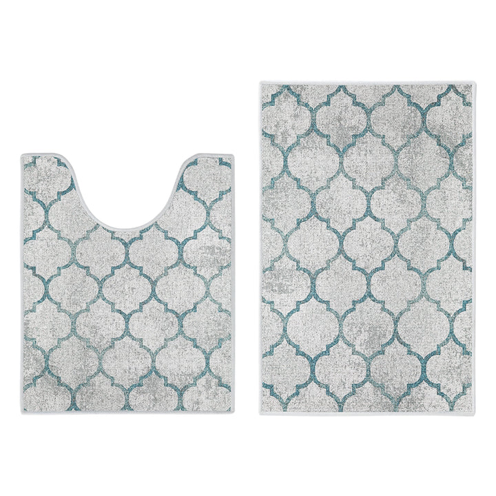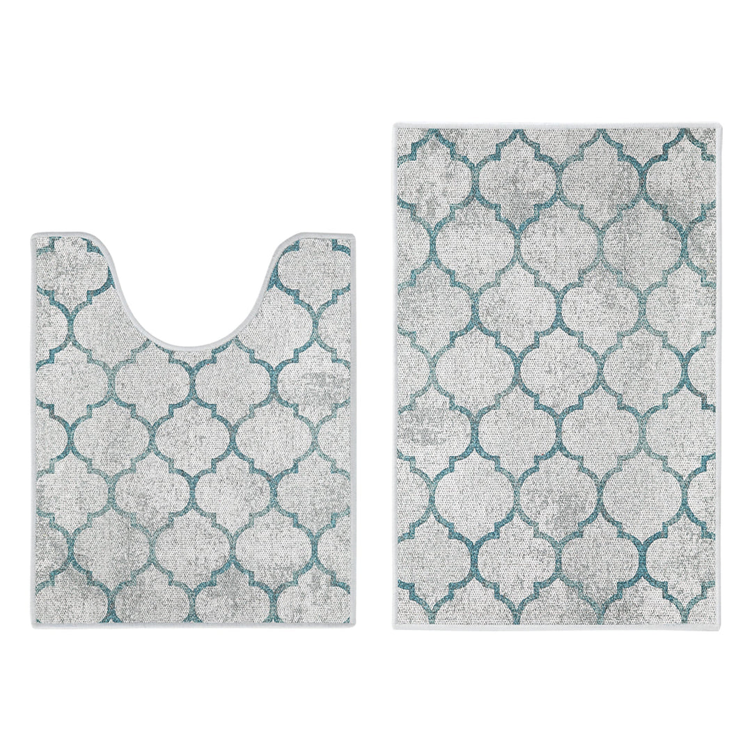 Geometric Design 2 Piece Bathroom Rugs Set | Gray&Teal