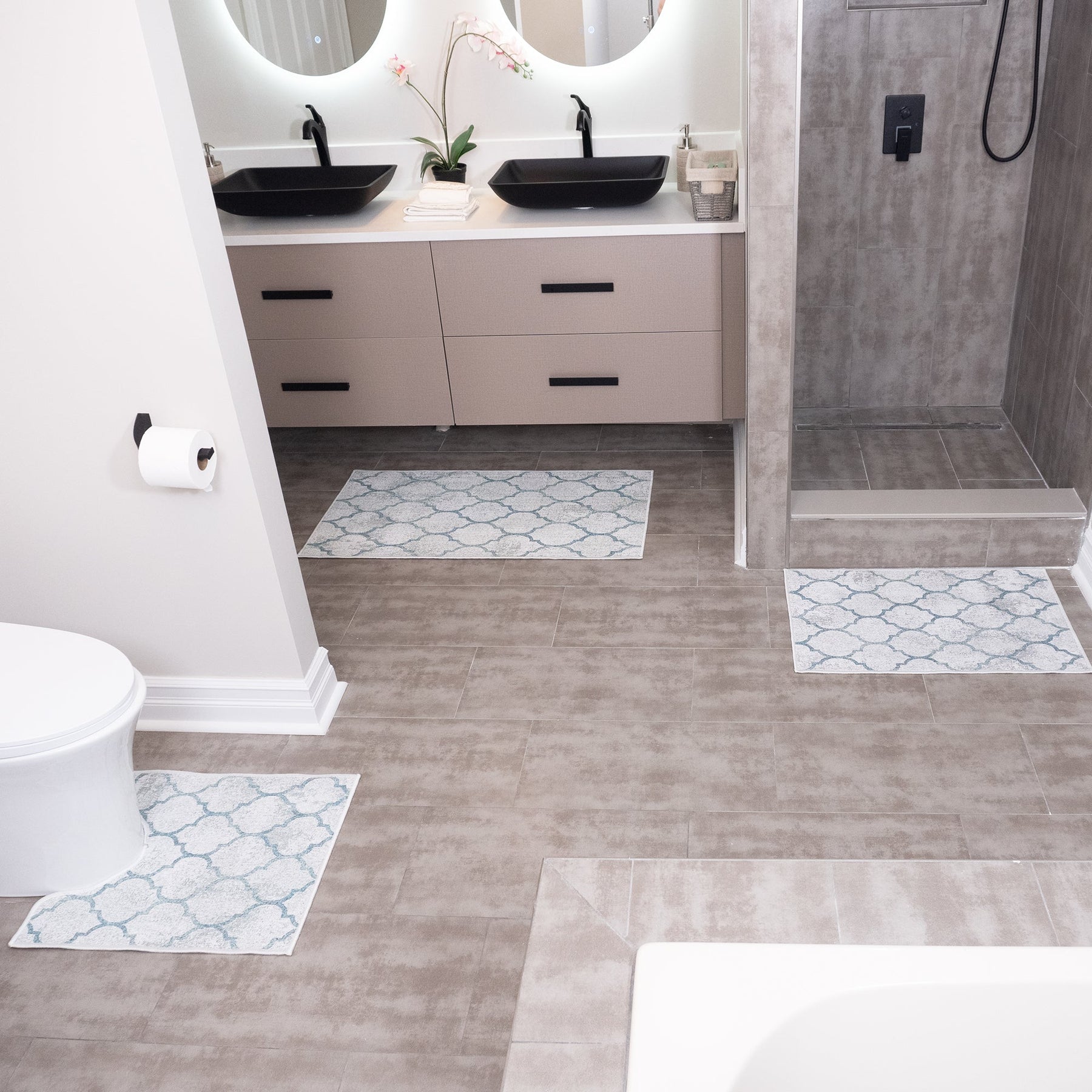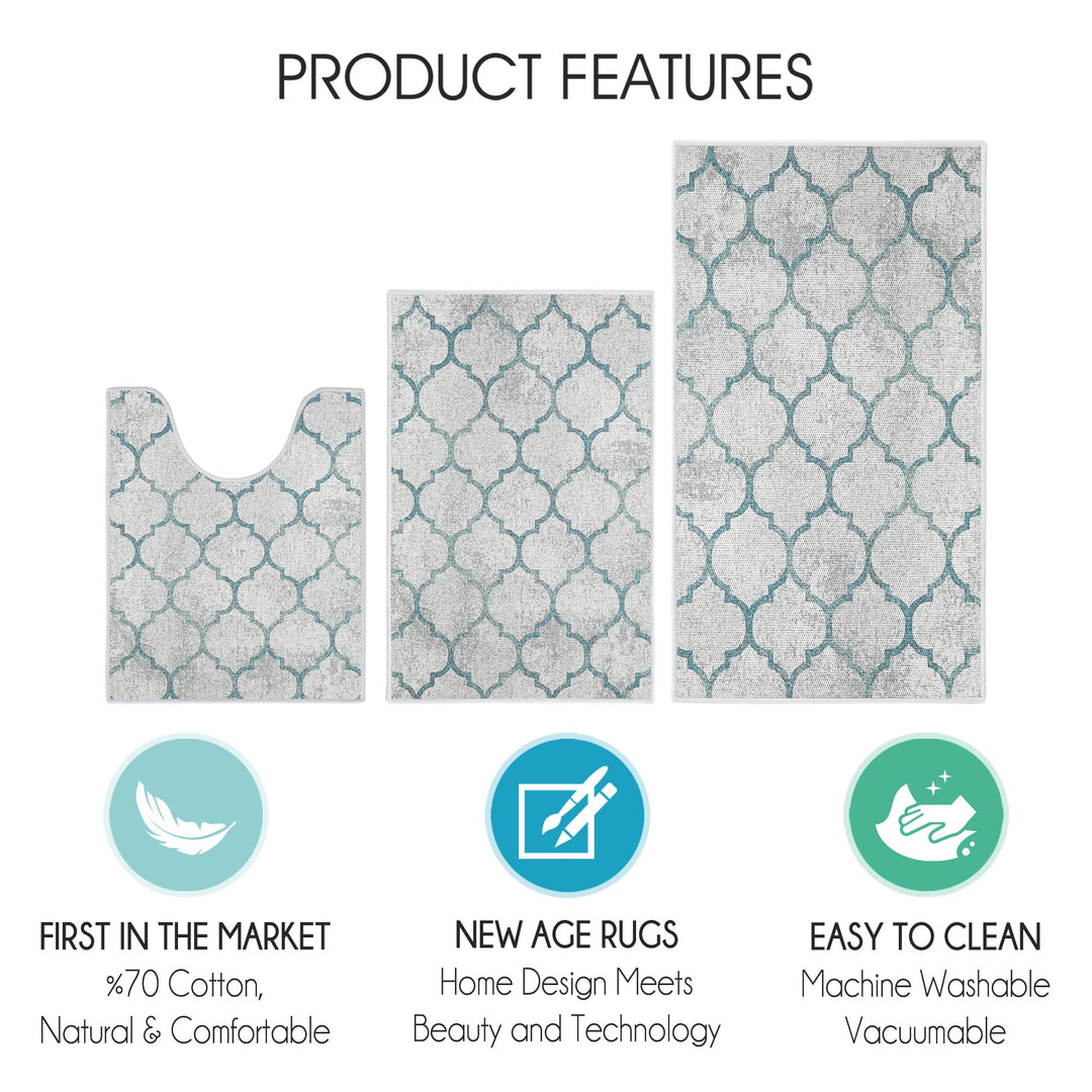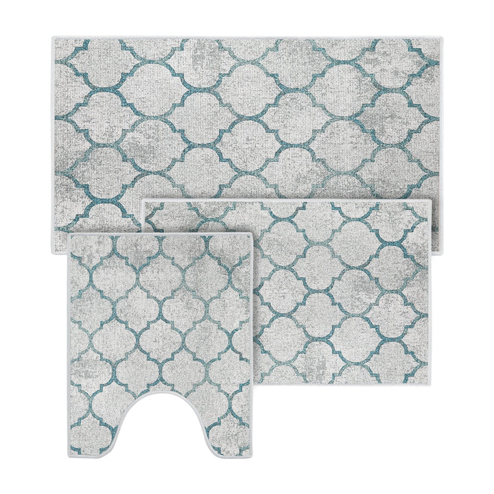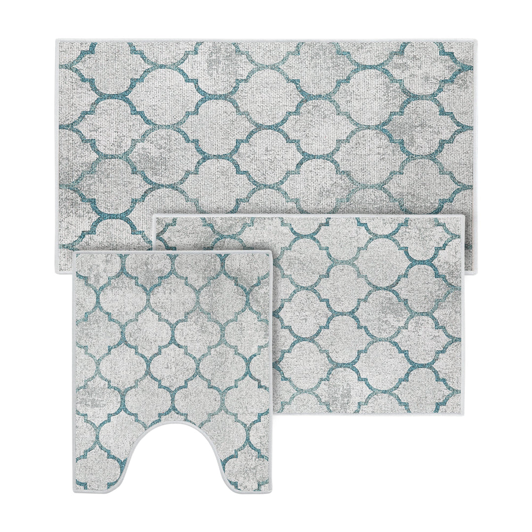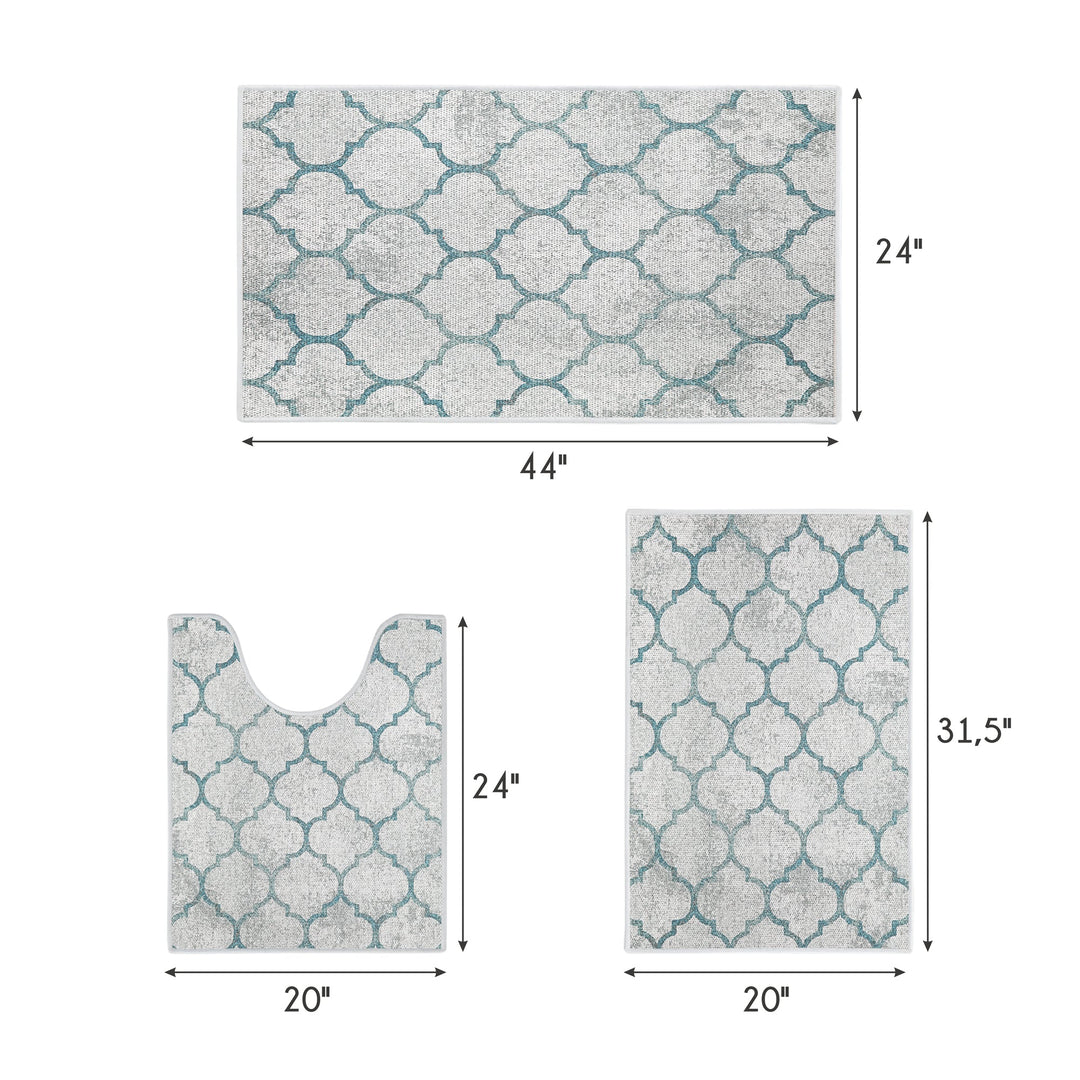 Geometric Design 3 Piece Bathroom Rugs Set | Gray&Teal