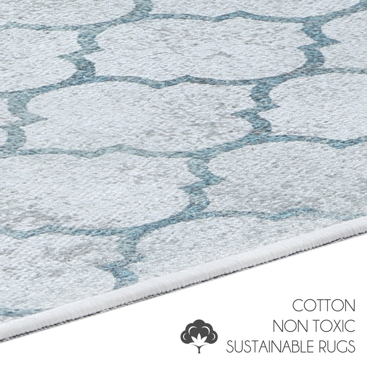 Lightweight, soft, and durable 70% cotton and 30% polyester material with non-skid backing prevents slipping on all floor types. With under 1/4" in thickness, our set will not get trapped under the doors, creating a hazardless environment that is safe for children, the elderly, and pets.