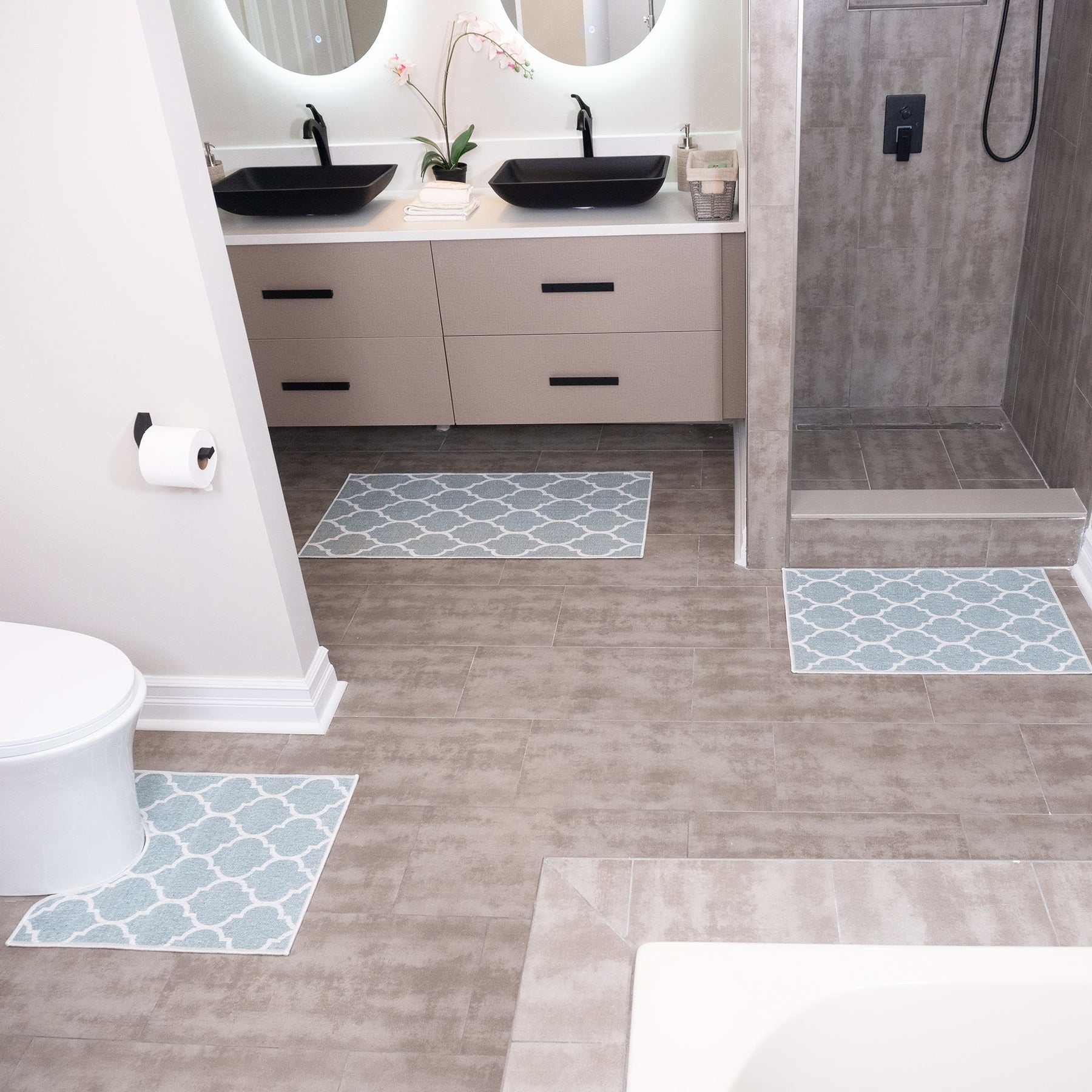 Crafted to the highest standards with quality materials and paired with the latest technology in printing, our three piece bathroom rugs set will complement all interior styles by adding fun accents and unique patterns in bold and fun prints.