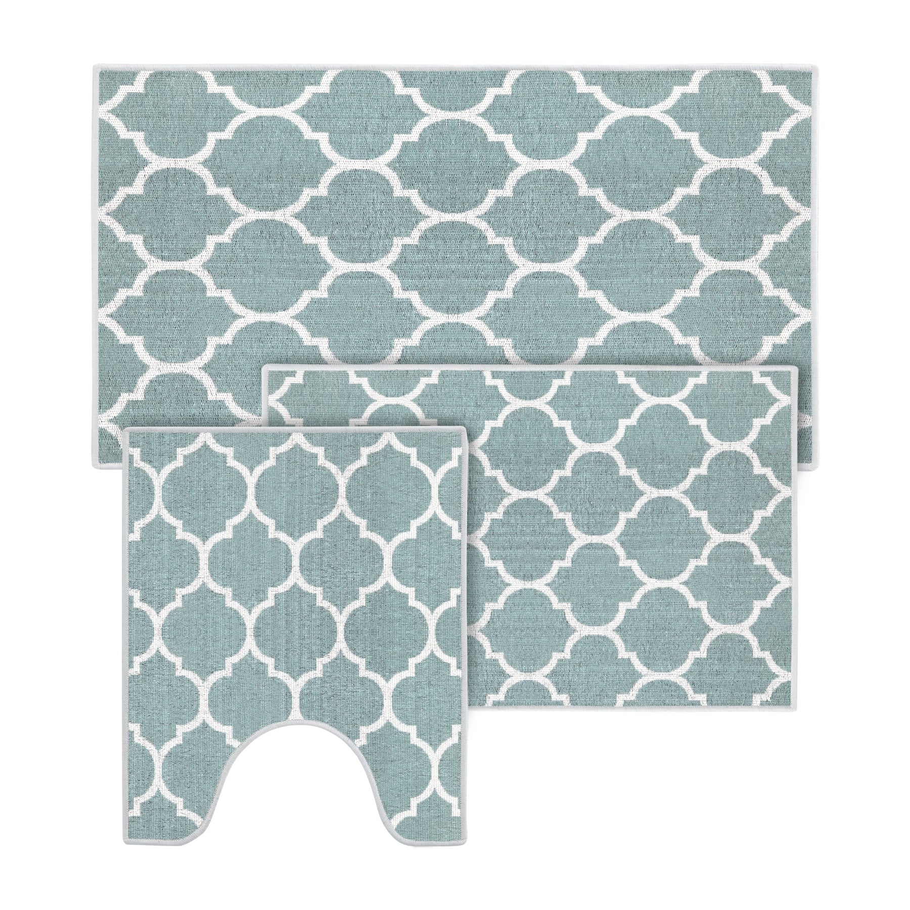 Geometric Design 3 Piece Bathroom Rugs Set | Light Teal