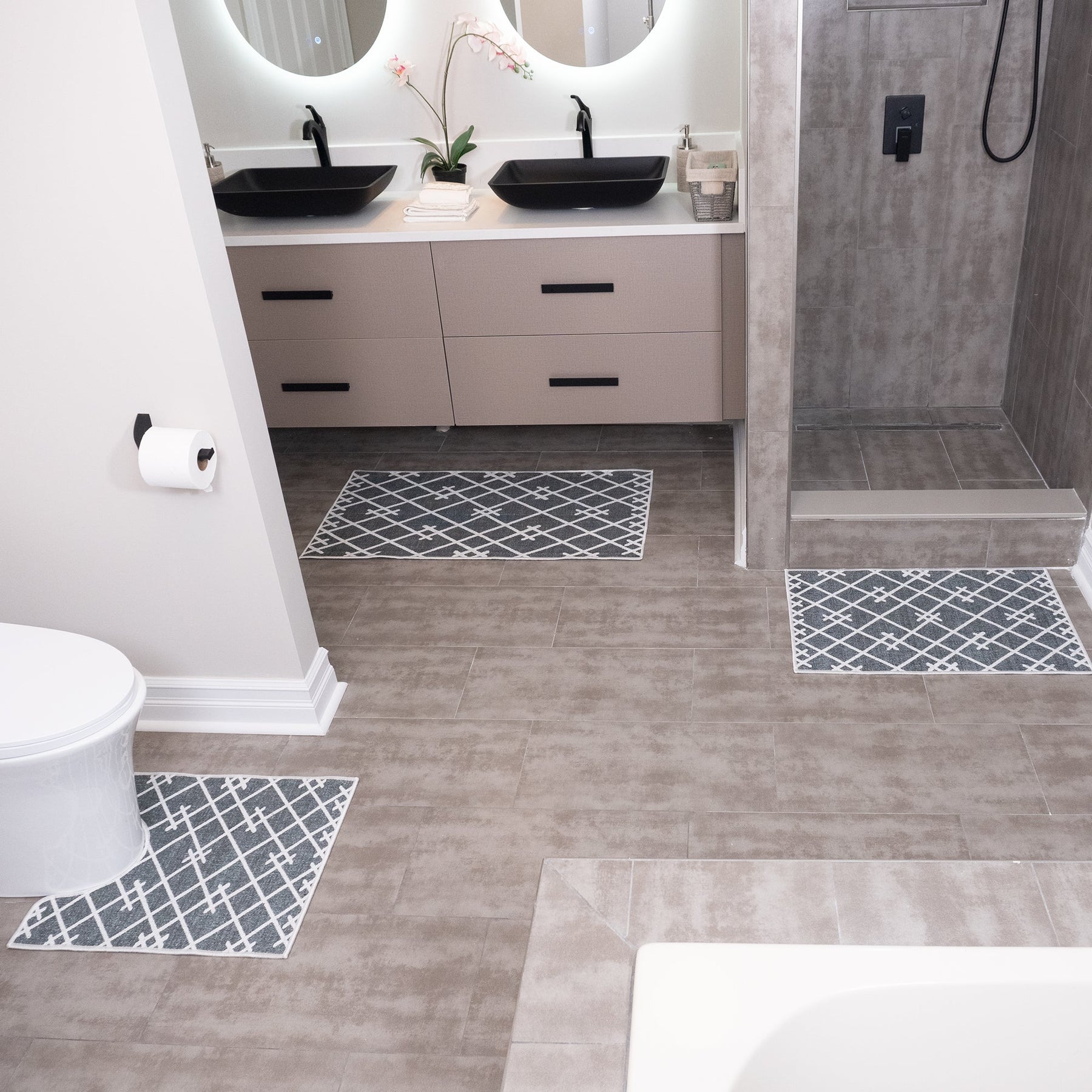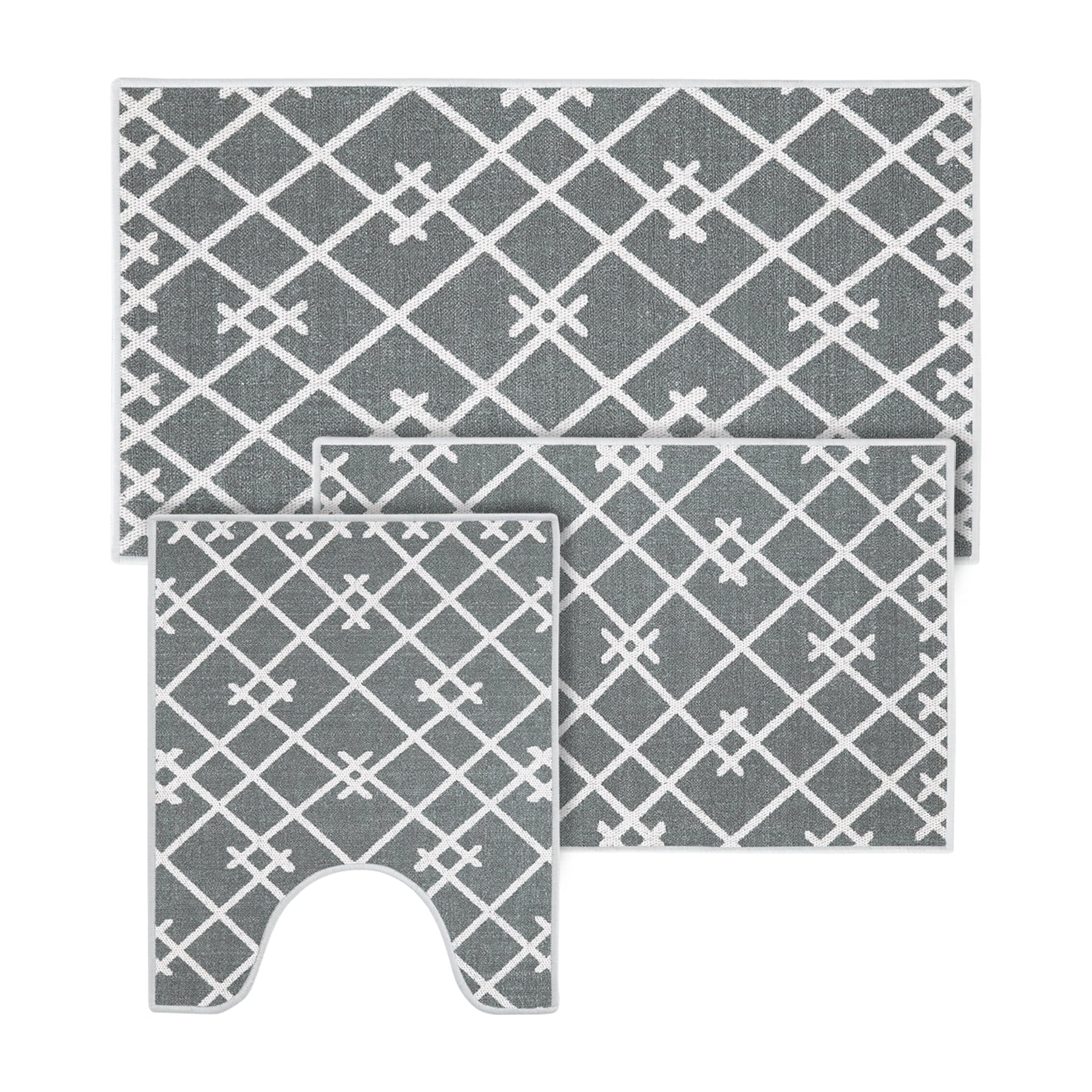 Geometric Design 3 Piece Bathroom Rugs Set|Gray