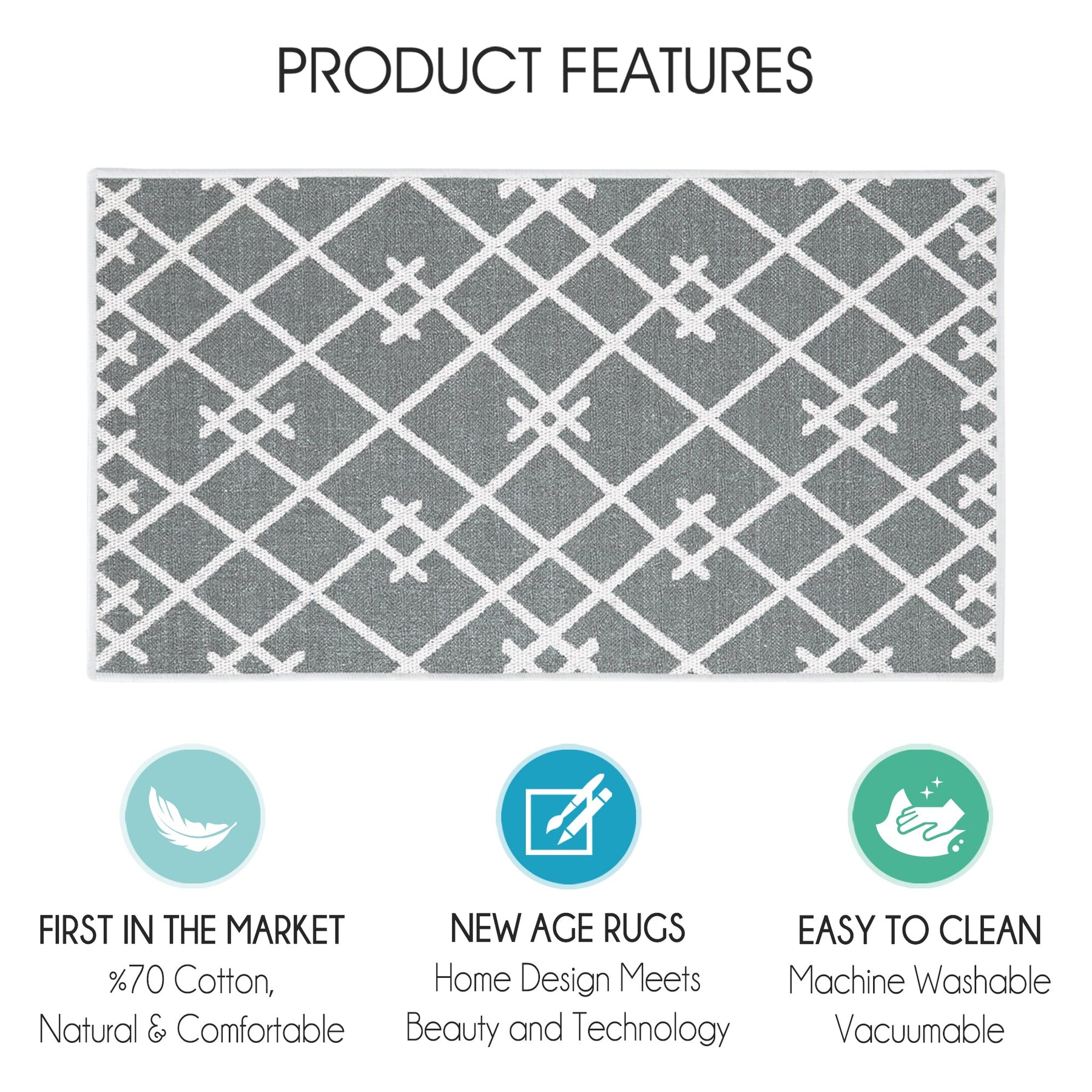 This protective non-slip backed flooring mats are made of lightweight, soft, and durable 70% cotton and 30% polyester material, preventing slipping on all floor types. With under 1/4" in thickness to fit under the doors, our rugs for home are ideal as indoor door entry rugs, laundry mats for laundry room, and kitchen floor mats for in front of sinks.