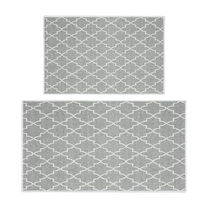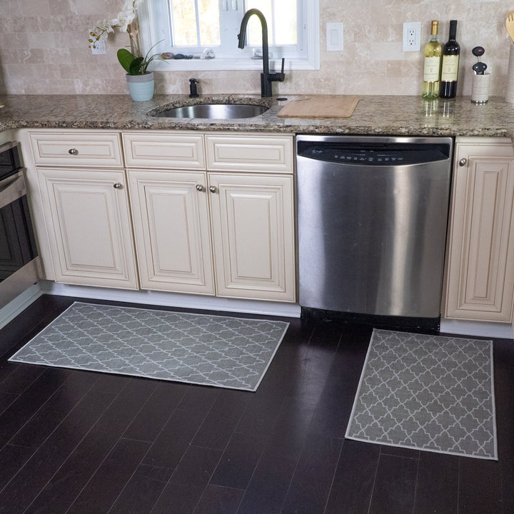 Geometric Design Non Skid Washable Kitchen Runner Rugs Set of 2| 44 x 24 and 31.5 x 20 Inches Floor Mats |Gray