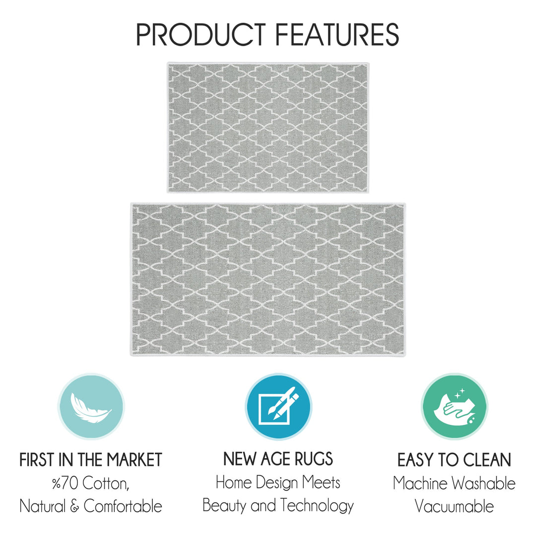 These protective non-slip backed flooring mats are made of lightweight, soft, and durable 70% cotton and 30% polyester material, preventing slipping on all floor types. With under 1/4" in thickness to fit under the doors, our rugs for home are ideal as indoor door entry rugs, laundry mats for laundry room, and kitchen floor mats for in front of sinks.