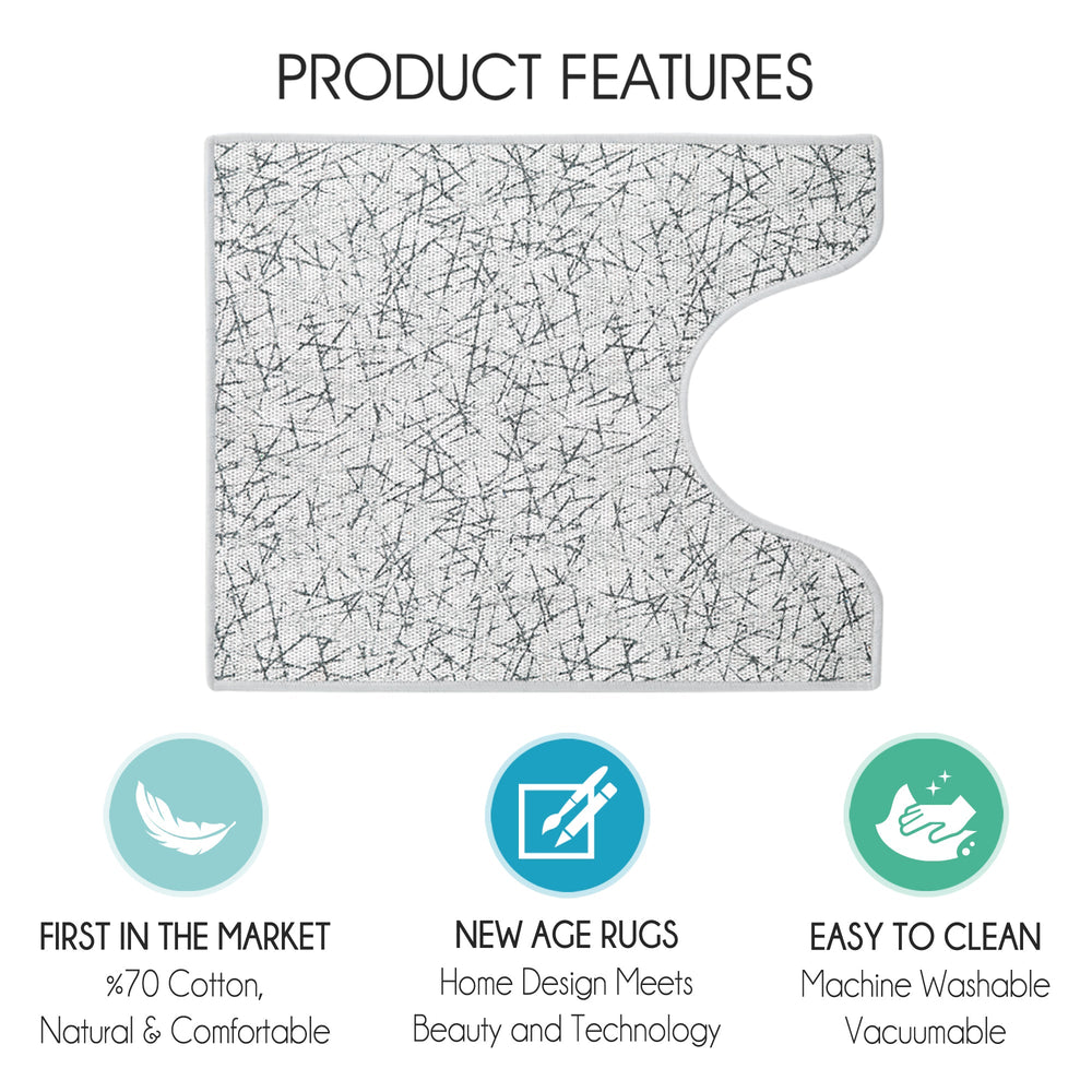 Geometric Design U Shape Bathroom Rug | 20”x24" | White