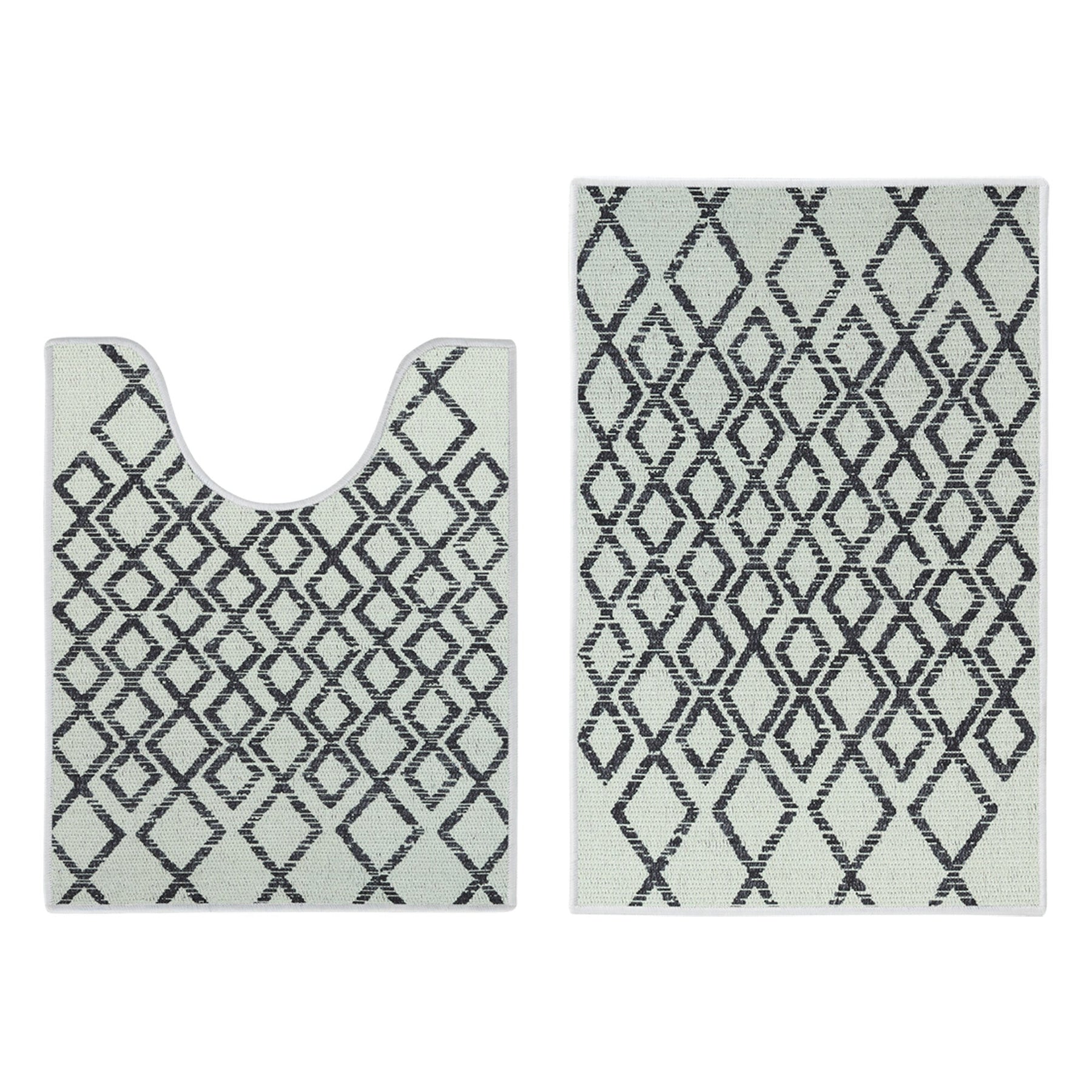 Geometric Diamond Design 2 Piece Bathroom Rugs Set | Ivory