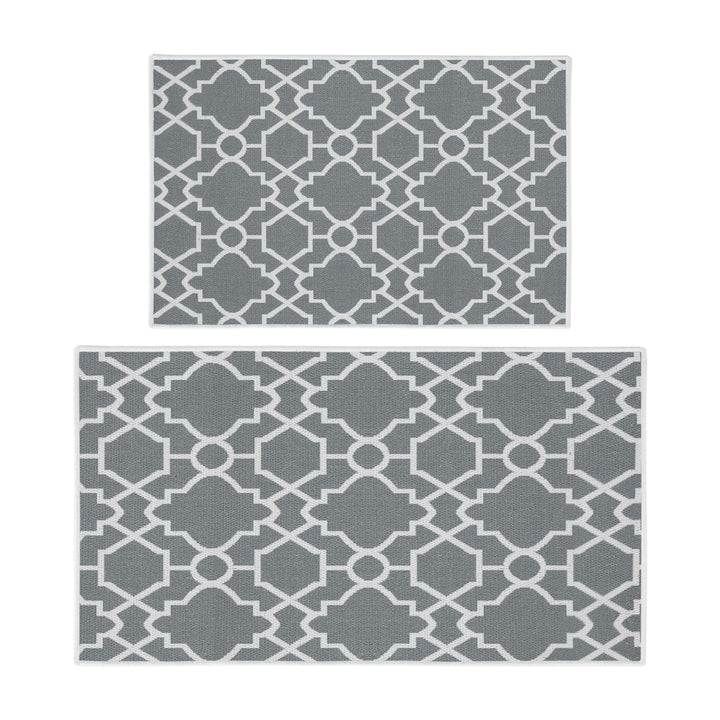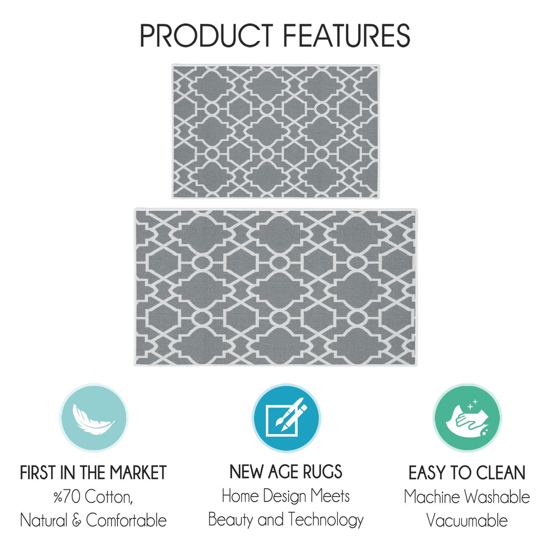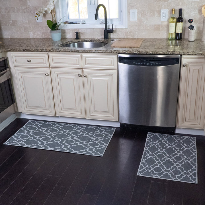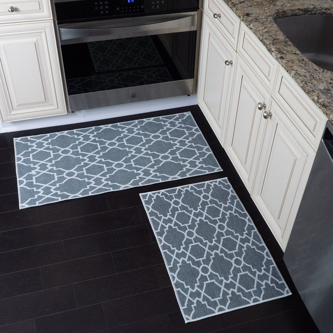 Geometric Graphic Design Non Skid Washable Kitchen Runner Rugs Set of 2| 44 x 24 and 31.5 x 20 Inches Floor Mats |Gray