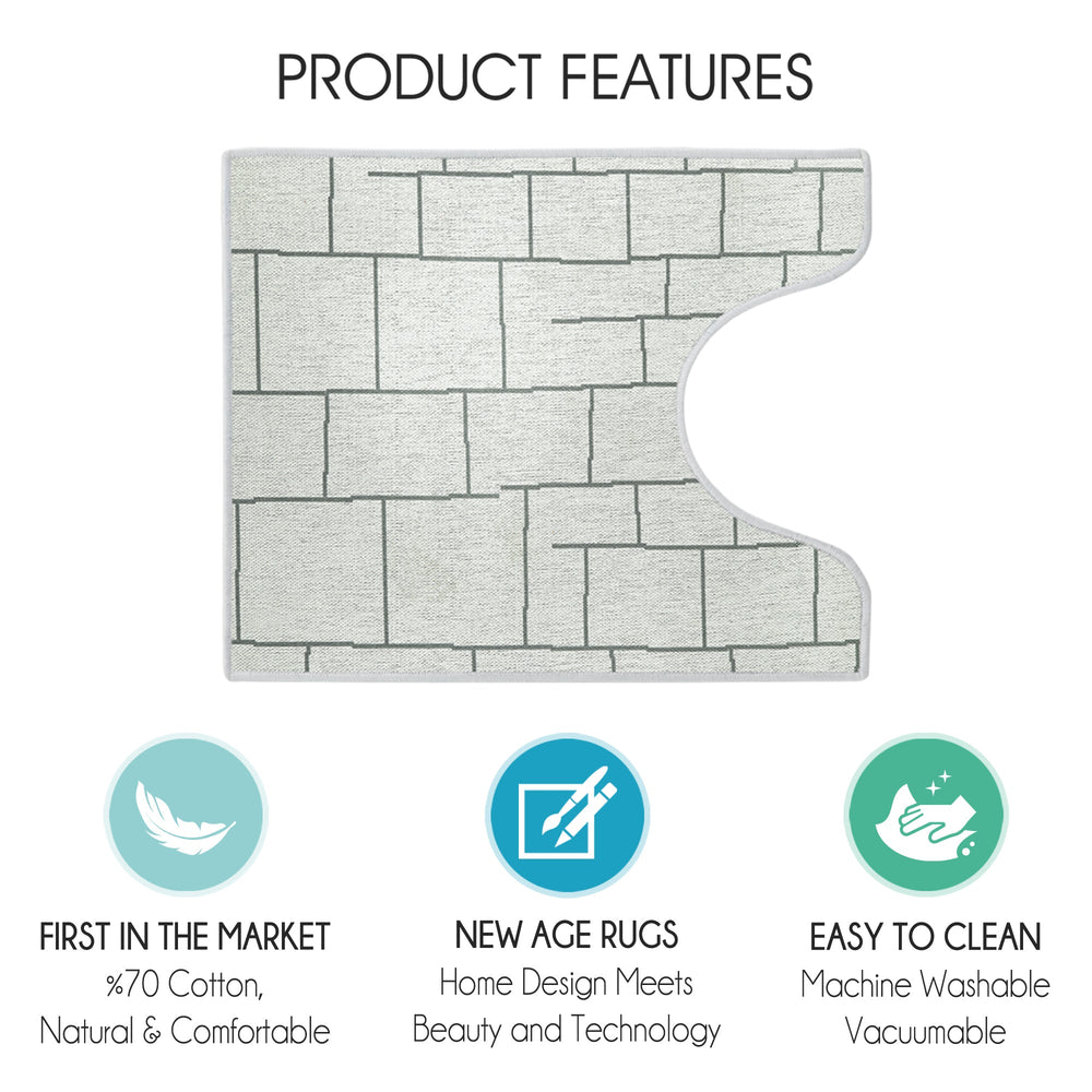 Grid Design U Shape Bathroom Rug | 20”x24" | Ivory