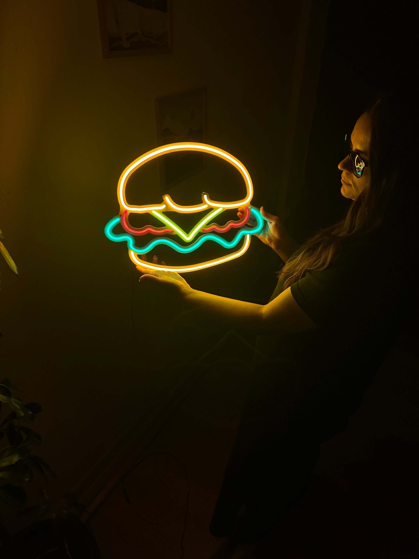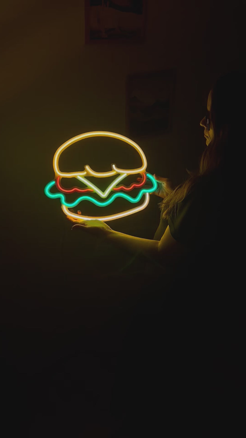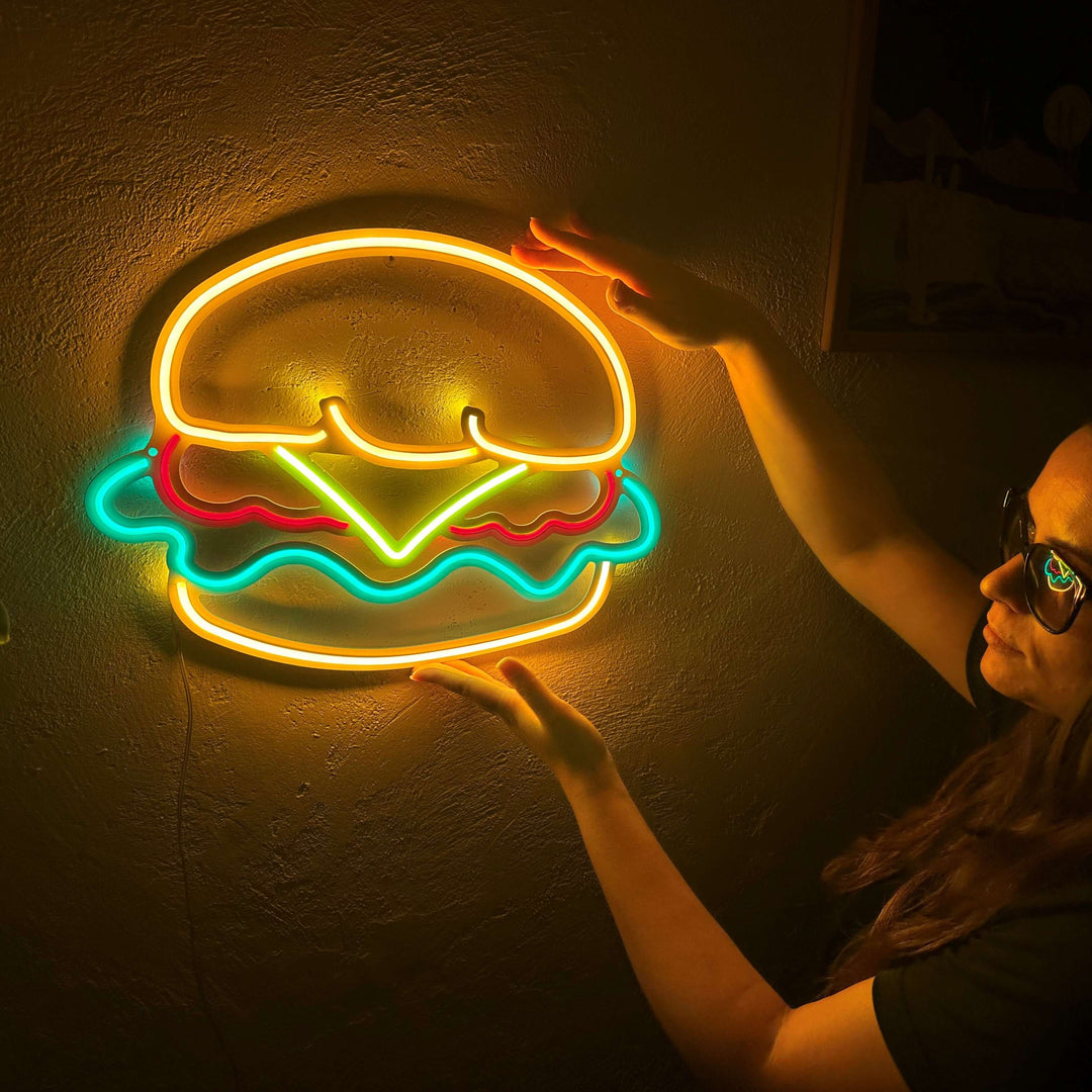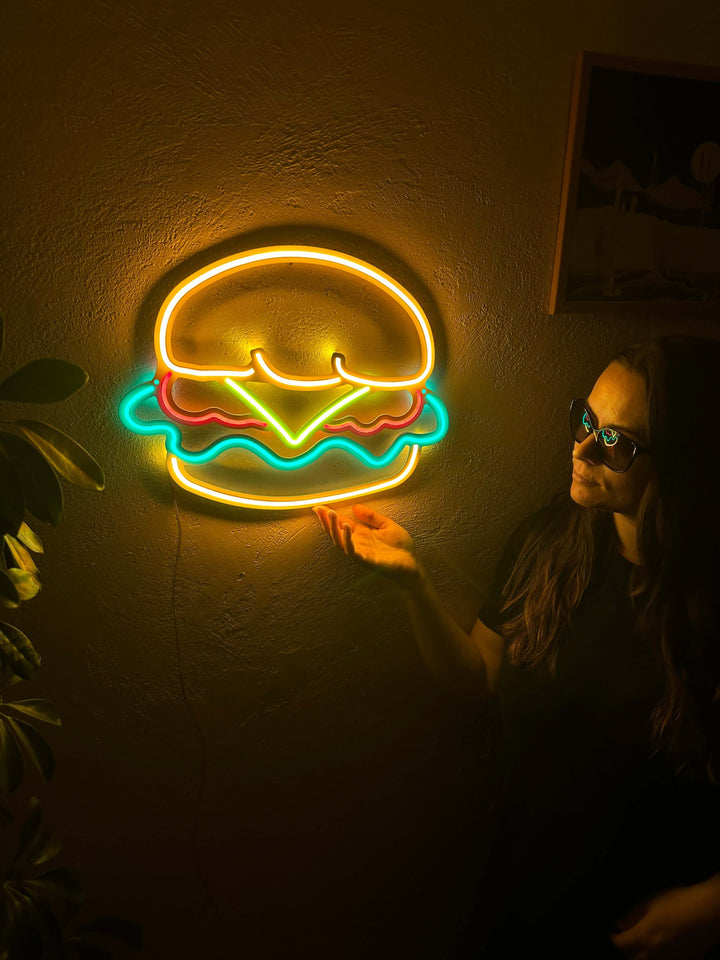 Hamburger Neon Metal Sign - Neon Signs available at Dekadron for $99.00