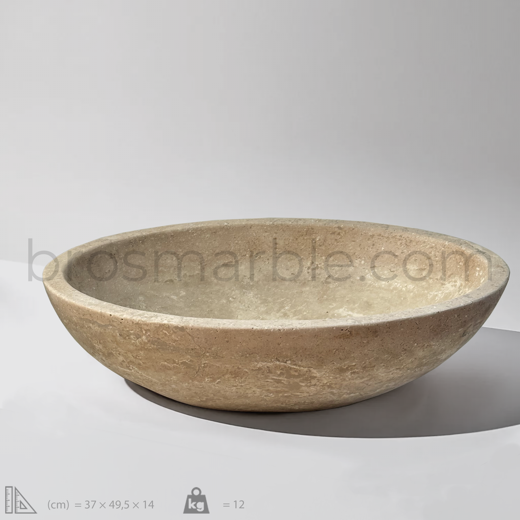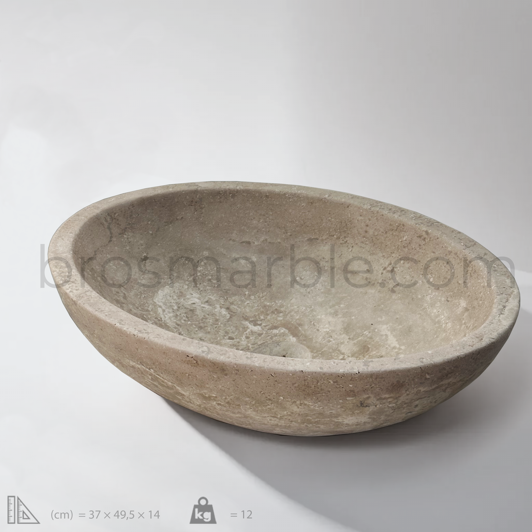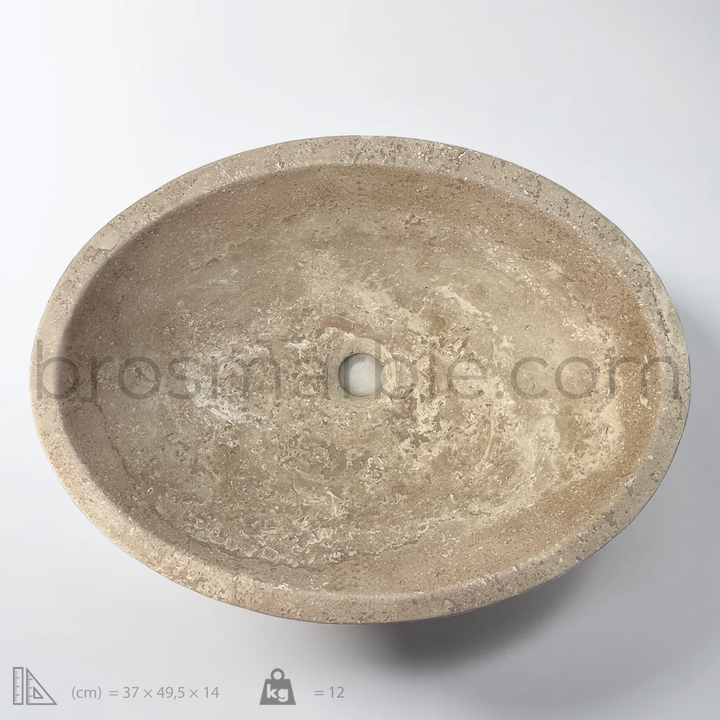 View the image of Light Travertine Oval Vessel Sink (BRS012) at BROSMARBLE. Premium marble sink in the Bathroom Sinks category, available for $410.00.
