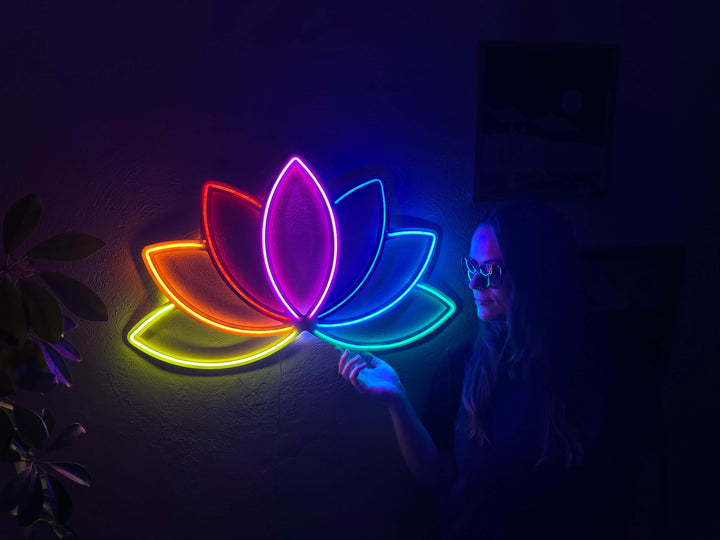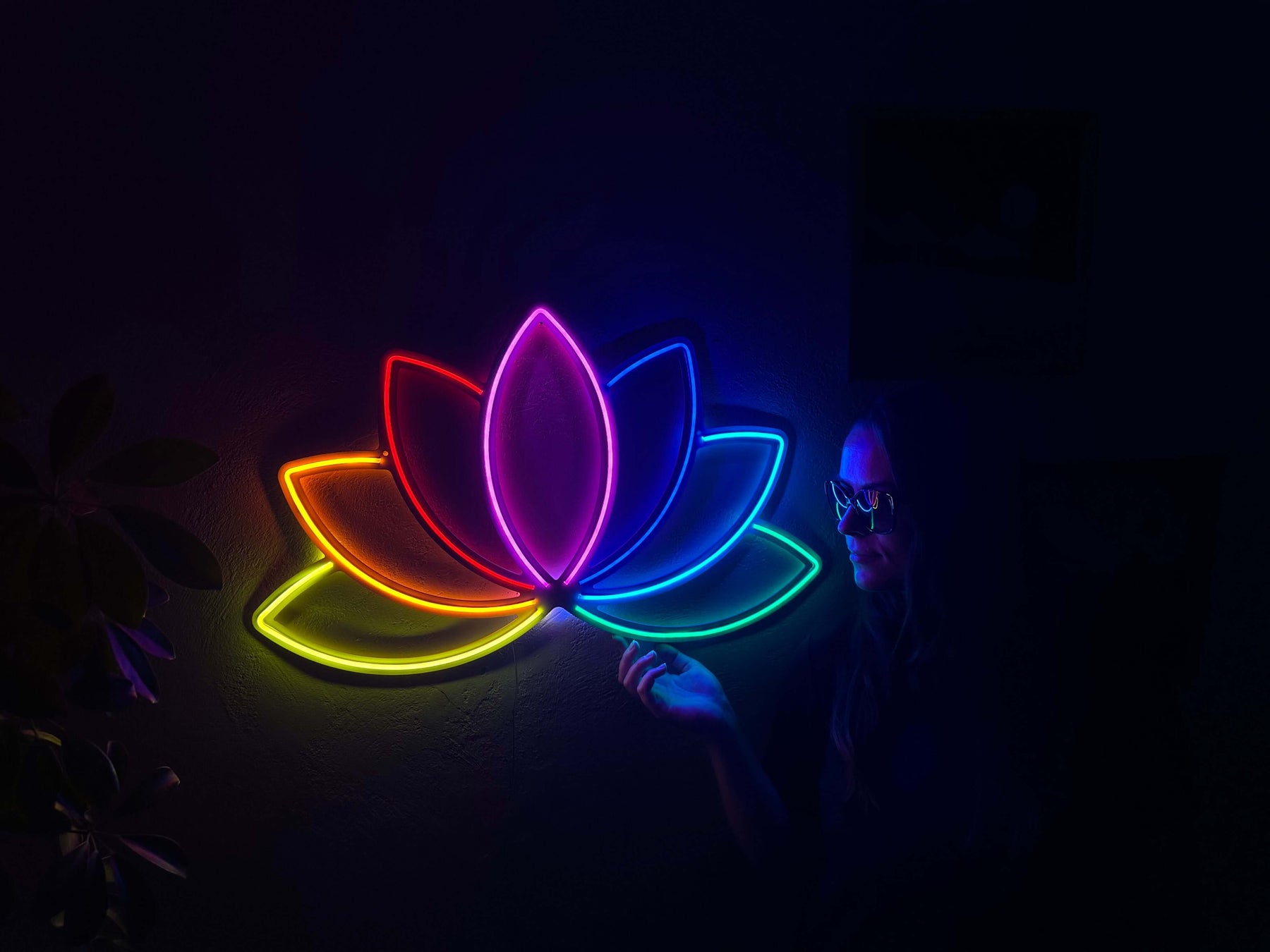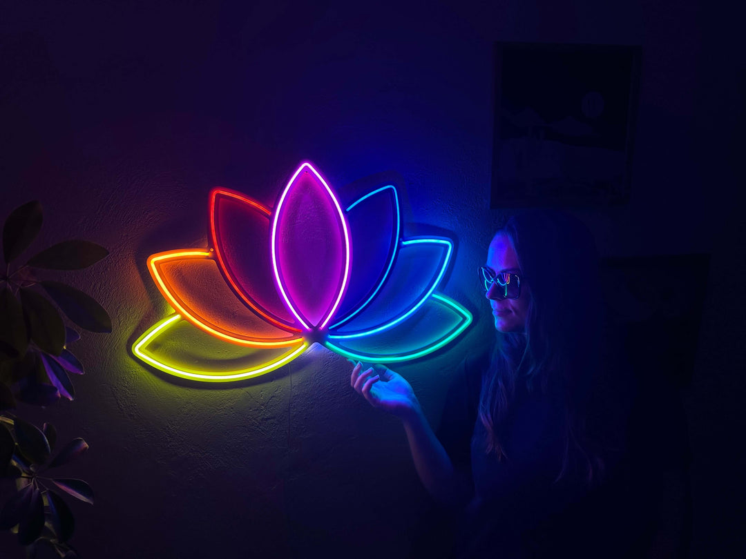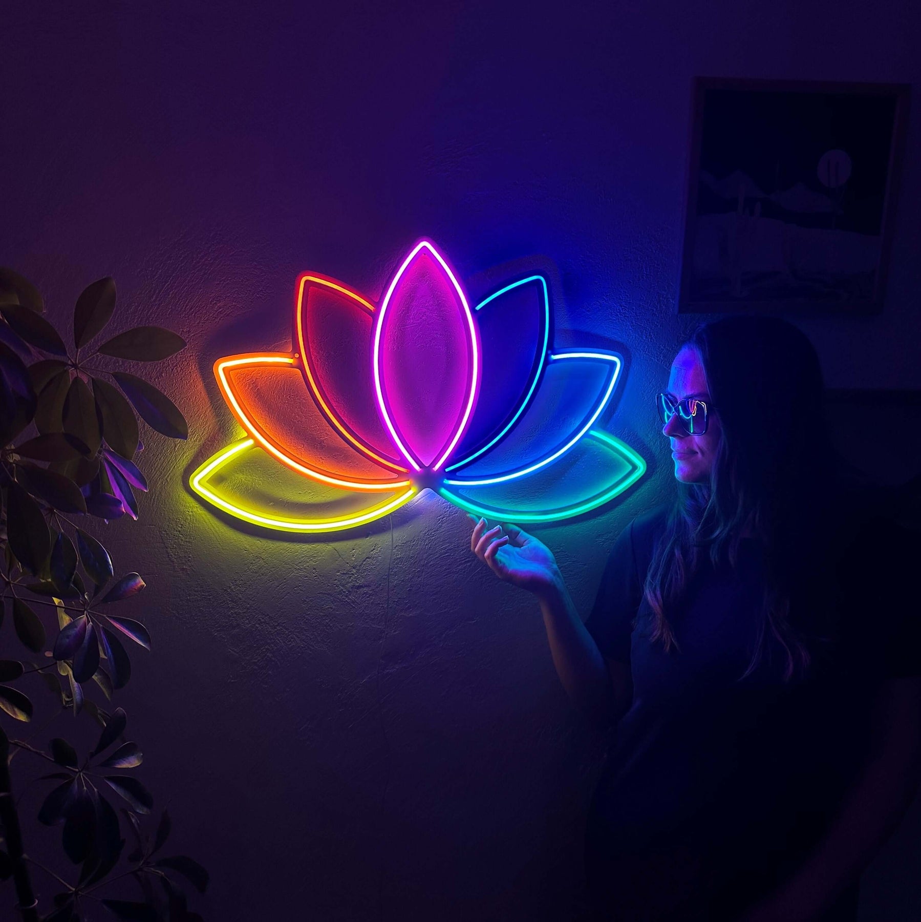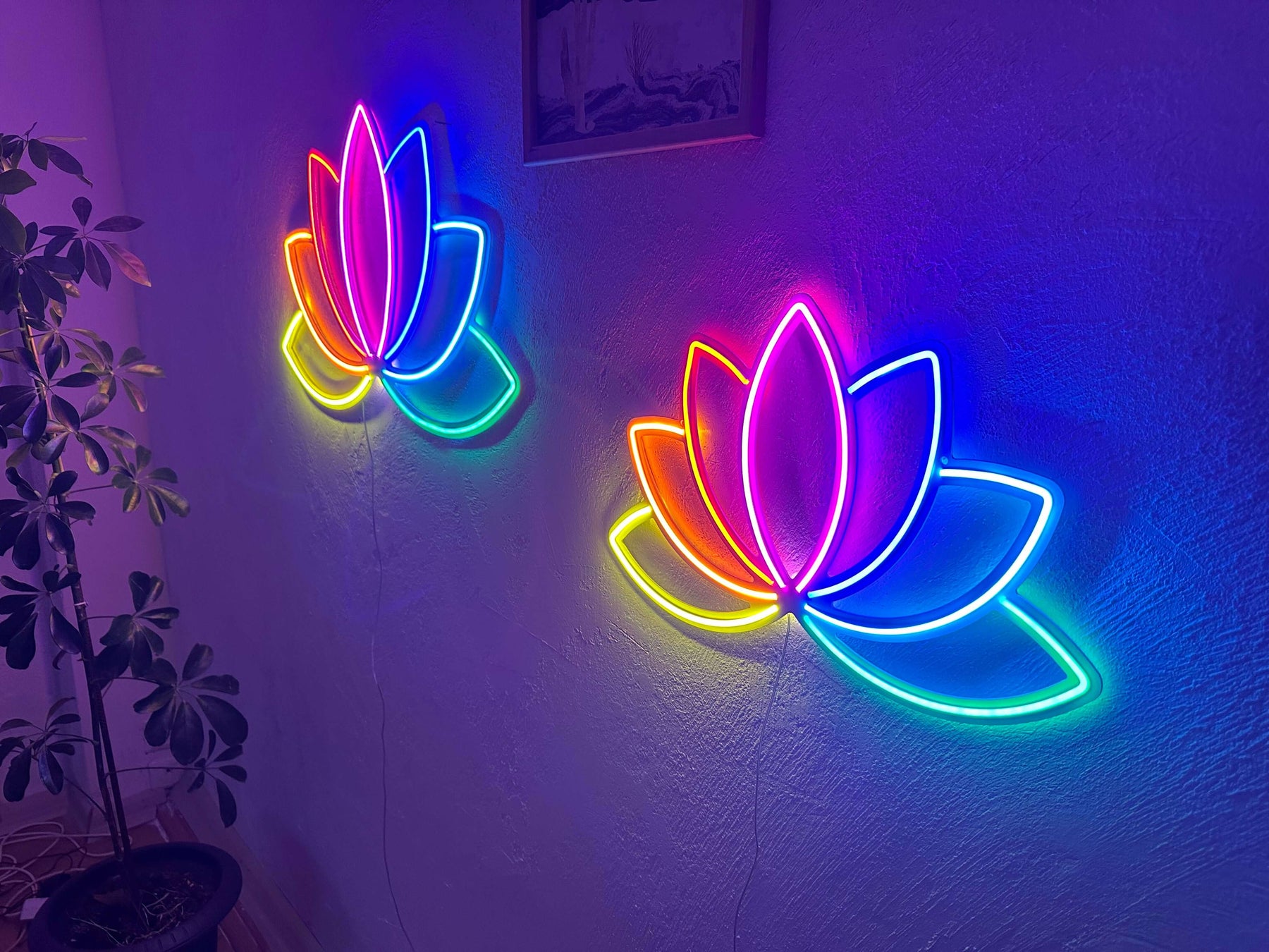 Lotus Flower Neon Metal Wall Art, Yoga Wall Decor - Neon Signs available at Dekadron for $99.90