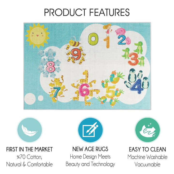 Low Pile- Non-Slip- Educational Kids Rug for Playroom |Numbers Pattern |39.5 x 59 Inches