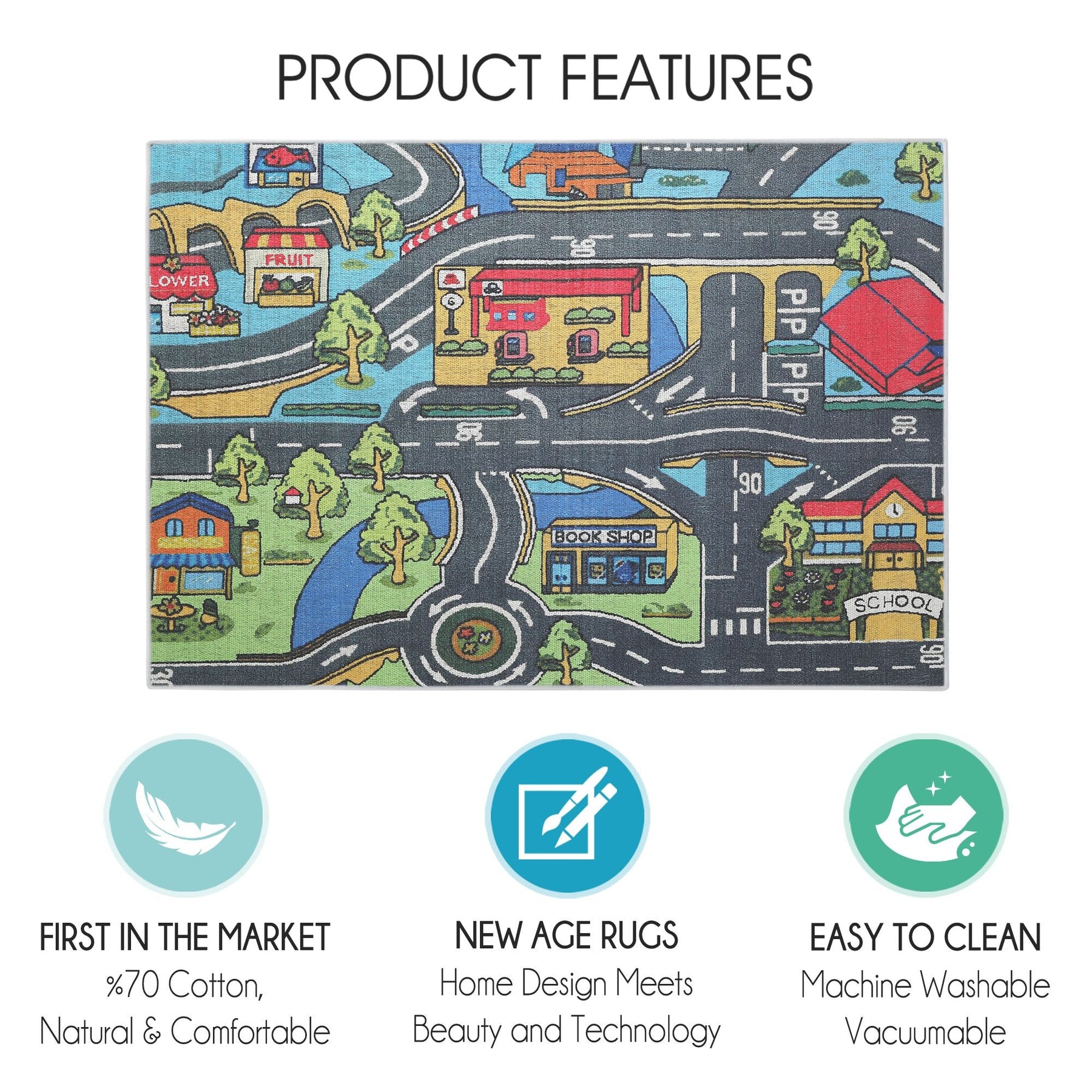 Low Pile- Non-Slip- Educational Kids Rug for Playroom |Road Pattern |39.5 x 59 Inches